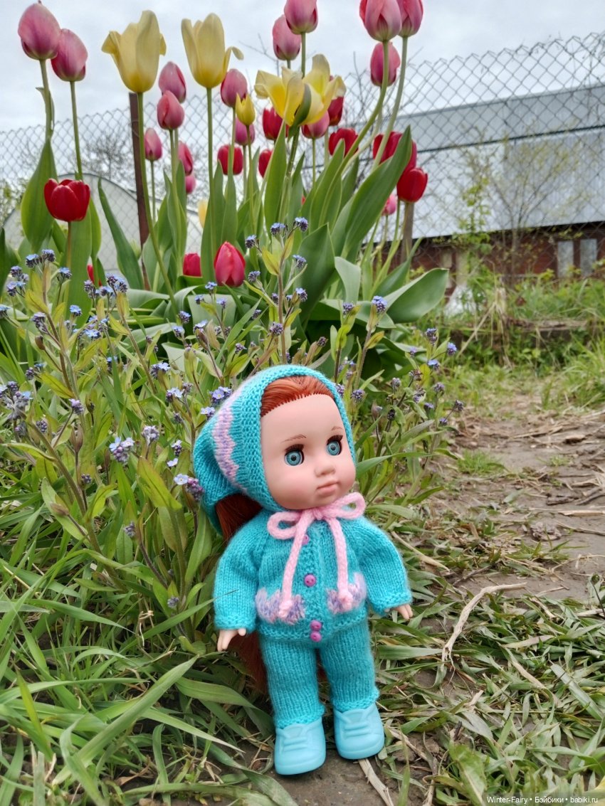 Дусенька — такая интересная девочка! Запрыгнула в маленькую сумку прямо в пижамке, хорошо хоть ботиночки надела. И когда увидела на аллее цветочки, даже не постеснялась людей мимо проходящих и позировала и восхищалась природой!