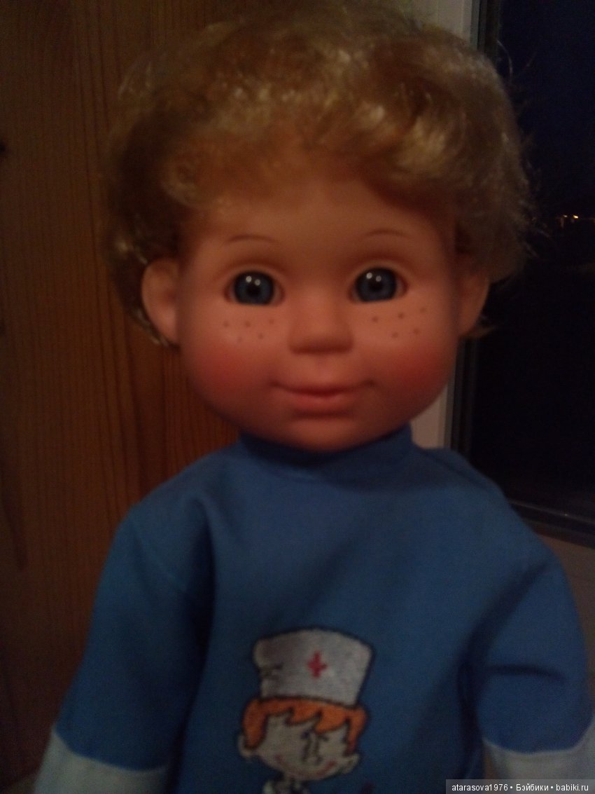 Неведомыми путями приводит к нам кукол Кукольный Бог. На даче хорошо читается и приятно думать о куклах. Недавно перечитывала книгу Вестли Анне-Катрине «Папа, мама, бабушка, восемь детей и грузовик». И вот одна фраза из книги повлияла на приезд новой куклы. А фраза была про то, что к детям приехала бабушка в рождественской шапочке Ниссе. И нецветная картинка бабушки в этой самой шапочке. Мне сразу захотелось поселить у себя рождественского Ниссе! Думала — кто мог бы подойти на эту роль? И вспомнила про игровых кукол фабрики Весна. На оф.сайте фабрики нашла конопатого мальчишку с озорными глазами, это был Митя. Ну вылитый Ниссе) Думала, что приедет кукла как на промофото, в красном костюме, а приехал в синем. Да, и цвет глазок другой, не зеленые, а голубые. Это было единственным разочарованием. В остальном все хорошо. Митя привез с собой мини каталог с куклами.