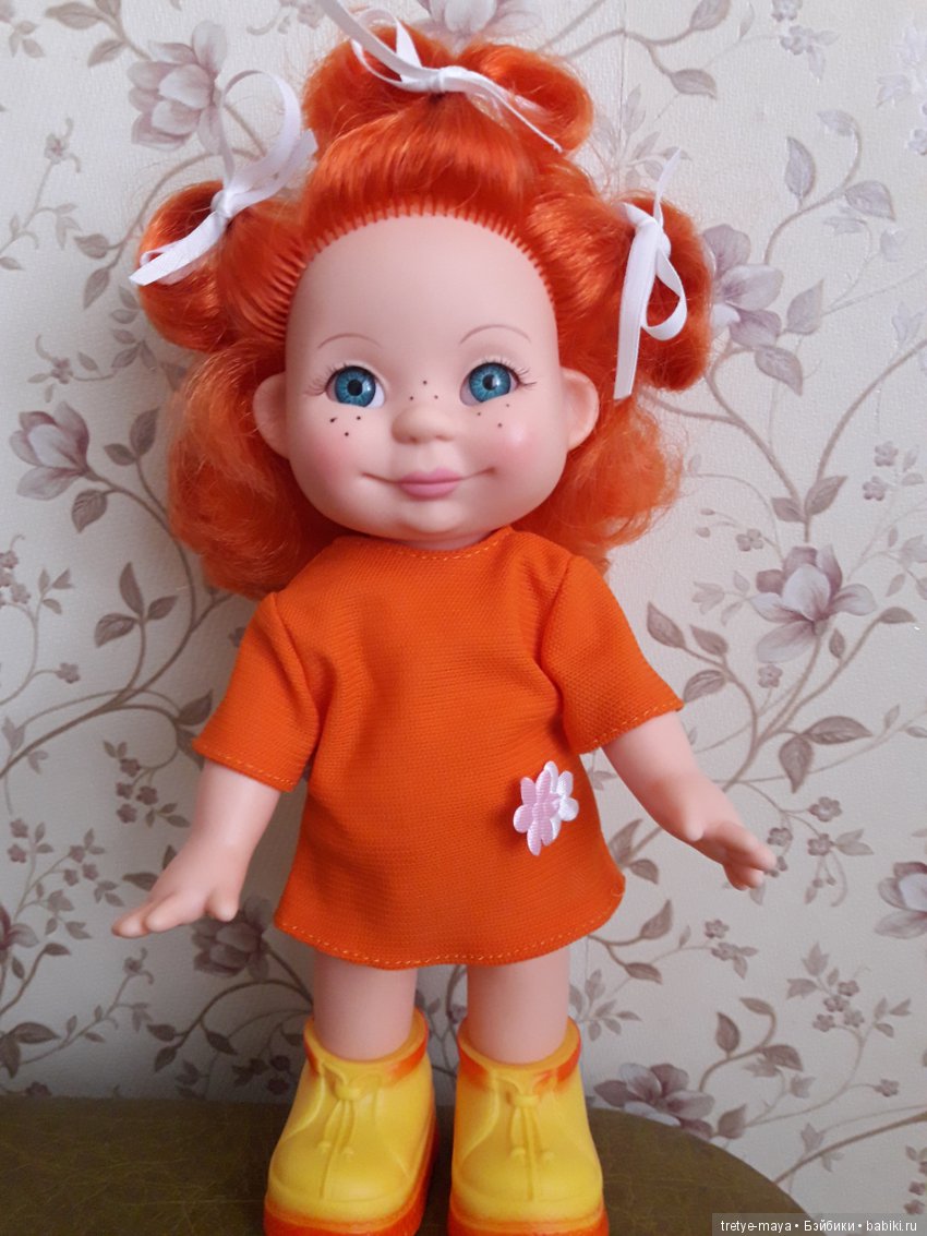 Пару лет назад понравилась мне игровая кукла Веснушка Васёна (Василиса) одной форумчанки. И мне захотелось такую позитивную девчушку.В магазине у нас такие Веснушки были в несъемной обуви, поэтому заказала с оф.сайта фабрики. Приехала озорная девочка, назвалась Сима-Серафима. Вызывает улыбку и хорошее настроение!