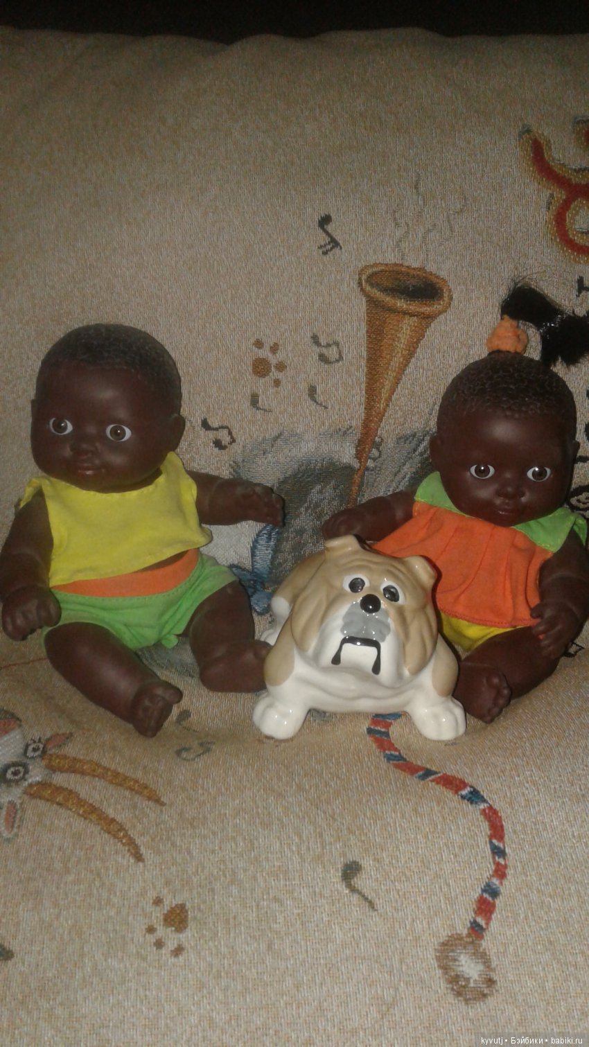 Люблю темнокожих кукол и не могла пройти мимо этих игровых кукол. Правда, купила их не сразу. Сначала встретилась девочка, а через год мальчик. Оба такие лапочки! Приятно держать на ладошке. Имена получили африканские. Девочка Монифа (удачливая), мальчик Бомани (боец). Радуют они меня своей шоколадностью)