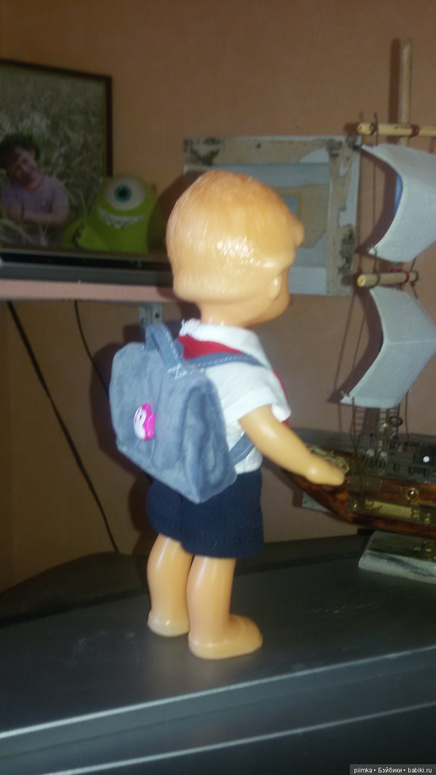 Здравствуйте друзья! Сегодня я хочу показать вам свою куколку фабрики «Весна». Это современная куколка, мне Ее подарили года два назад, но только сейчас я поняла, что ей очень пойдёт образ первоклассницы. Все связала на одном дыхании, а вот портфельчик оказался посложней в изготовлении, но все сложилось и мы прибежали показываться вам!!!