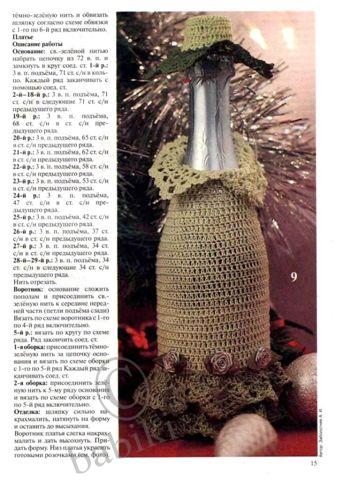 1 оборка. Присоеденить темнозеленую нить на цепочку основания и вязать по схеме оборки с 1-го по 5 ряд.Каждый ряд заканчивать соед. ст.
