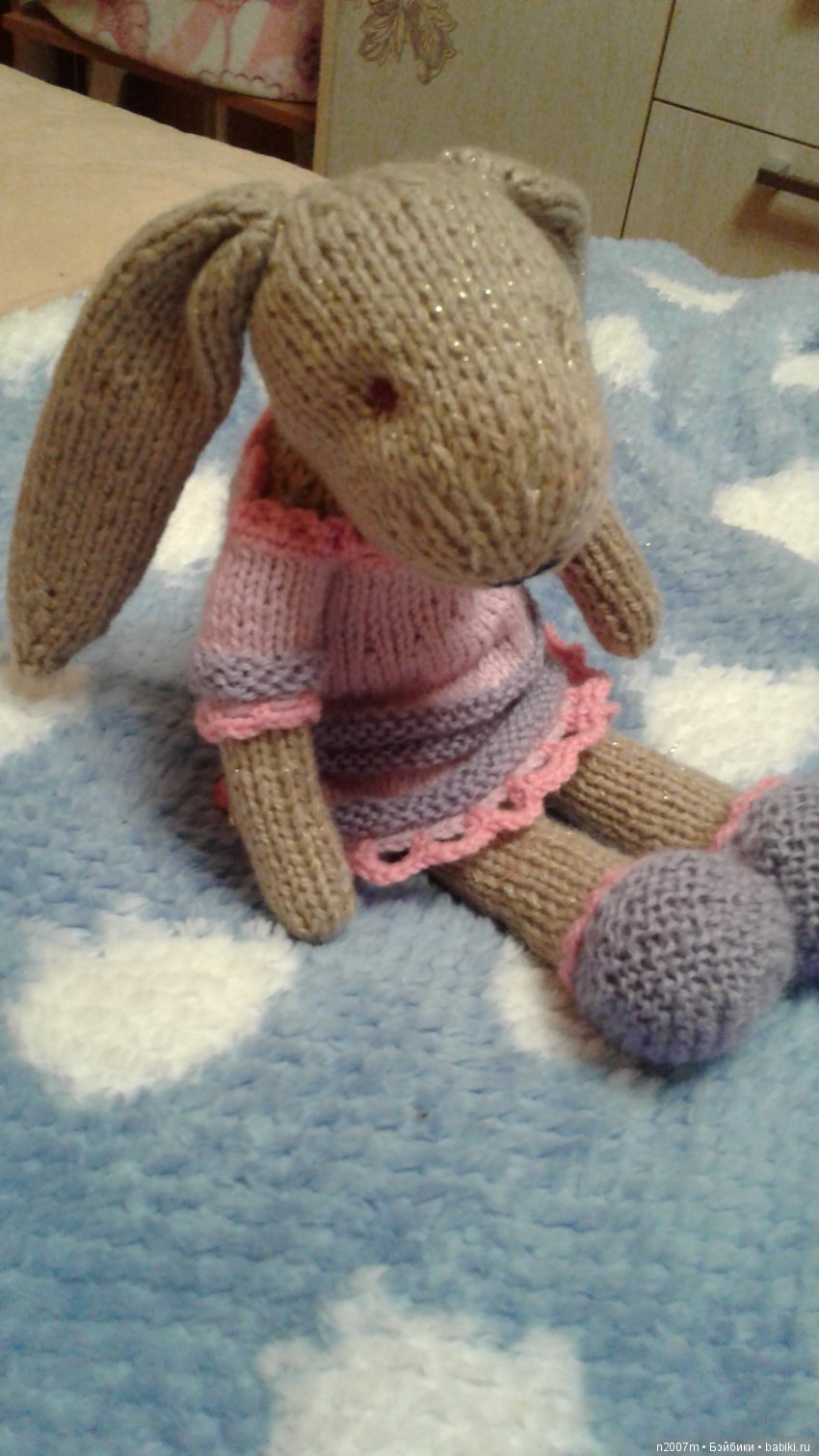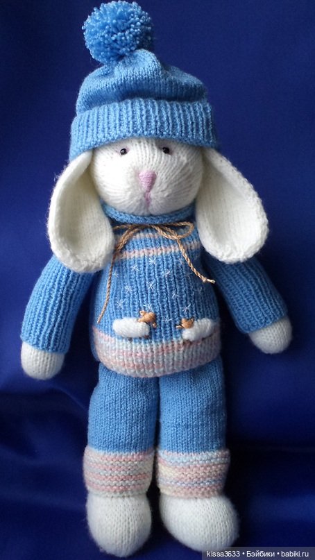 Хлопковые зайки связаны на спицах 3; 3,5 и 4 там нитка потолще была