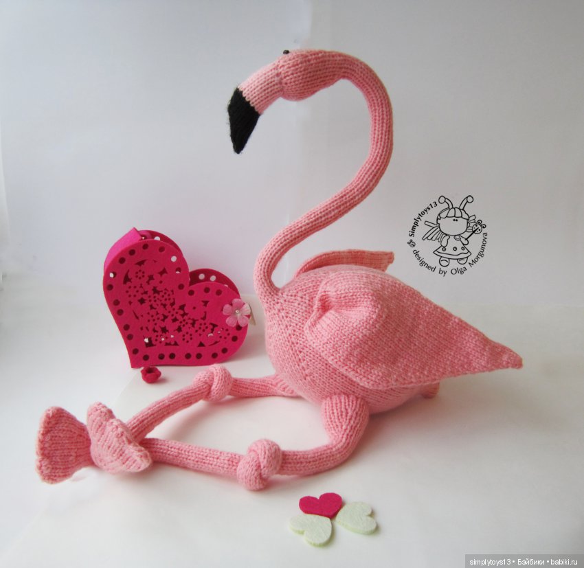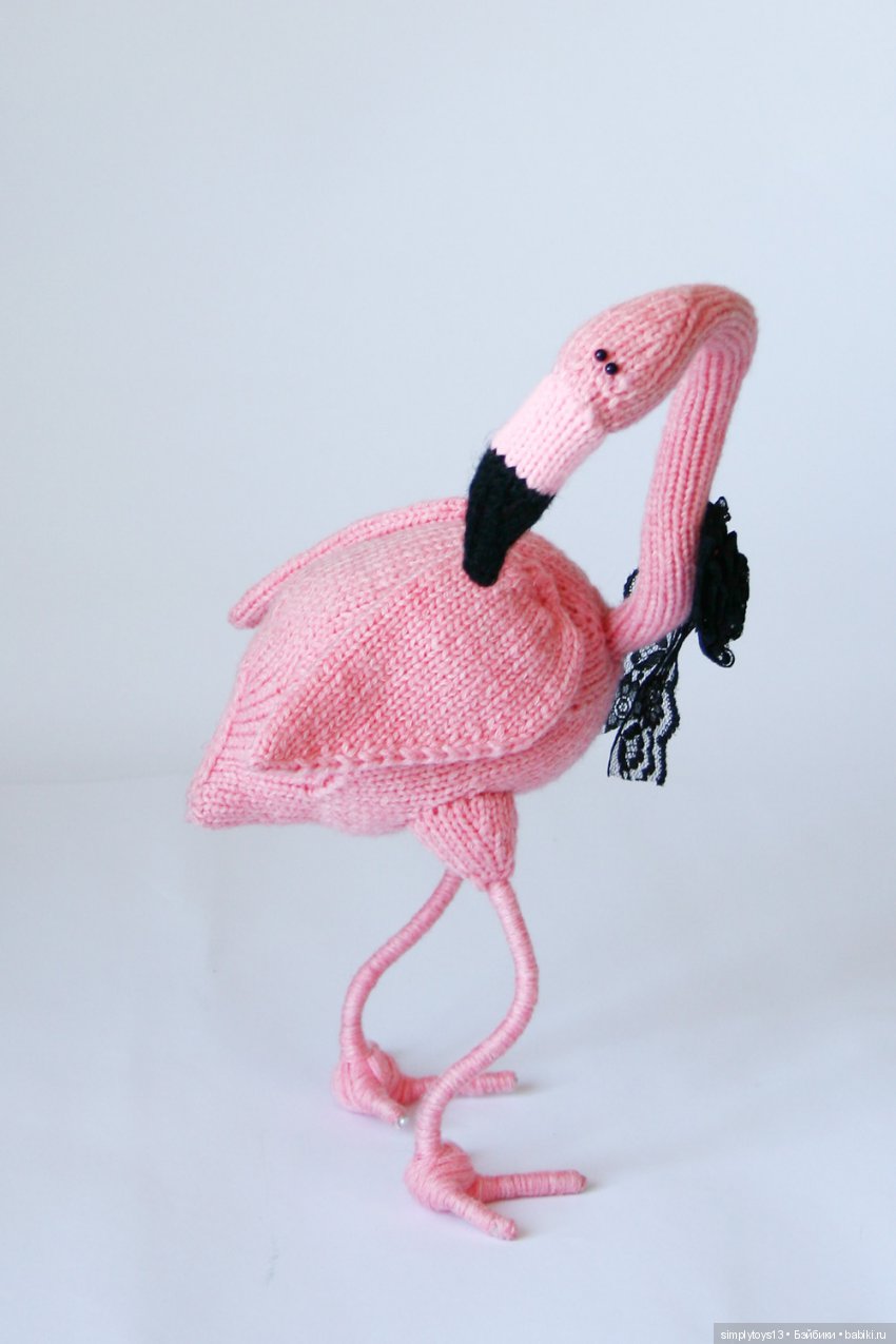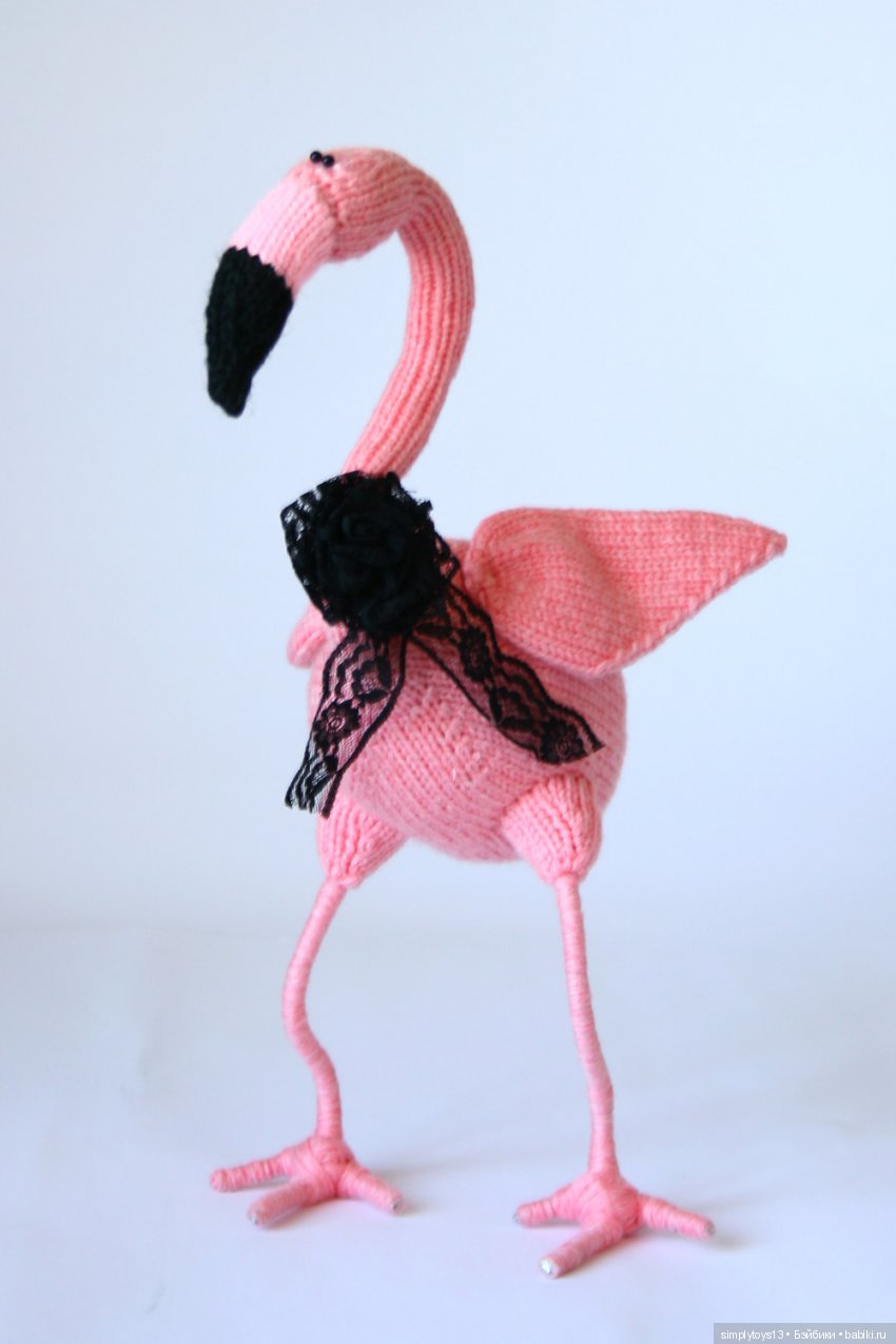 Я больше люблю вязать на 4х спицах. И этот фламинго был связан по аналогу моей игрушки, связанной спицами.