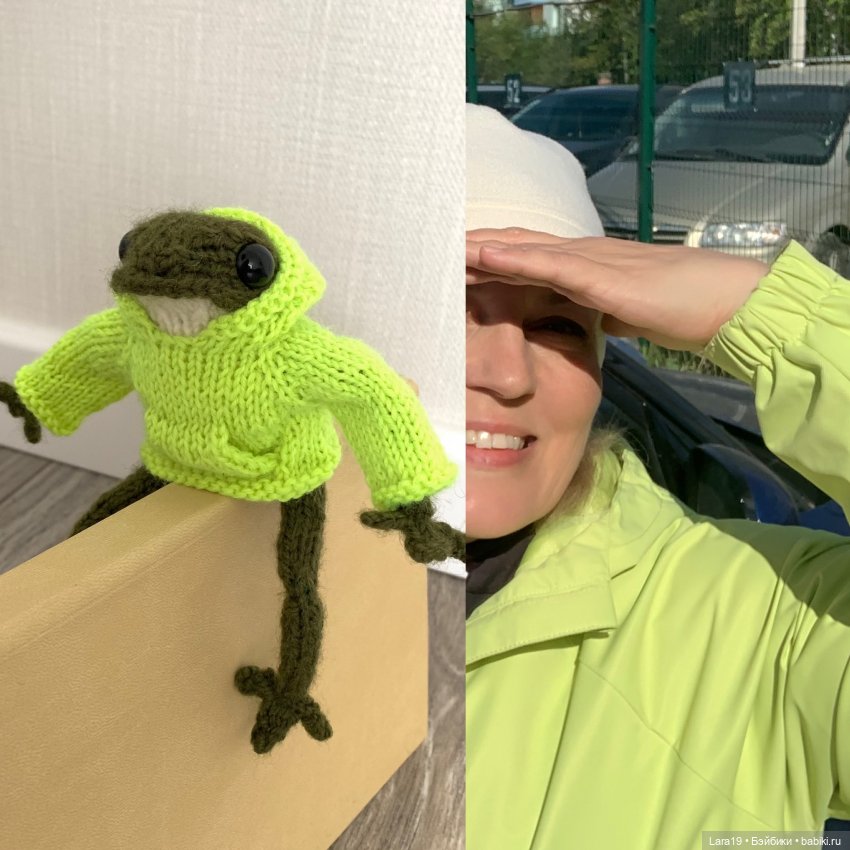 Я хочу поблагодарить всех участников вязального проекта «Лягушка от Клэр Гарланд»: тех, кто осуществил перевод МК Клэр (это не один человек), тех, кто снял видео как вязать лягушку и отдельно ее части (тоже несколько человек заморочились). Чтобы не получить упрек за неэтичность использования МК Клэр Гарланд бесплатно («переводчики слили чужое ноу-хау»), спешу сообщить, что в день вязания в 2022 году Клэр сама выложила на 2 дня это описание в бесплатный доступ, а еще у меня возникла возможность, так сказать, поблагодарить Клэр, приобретя у нее уже постфактум этот МК, оплатив 3,5 фунта («ни один автор не пострадал»))).