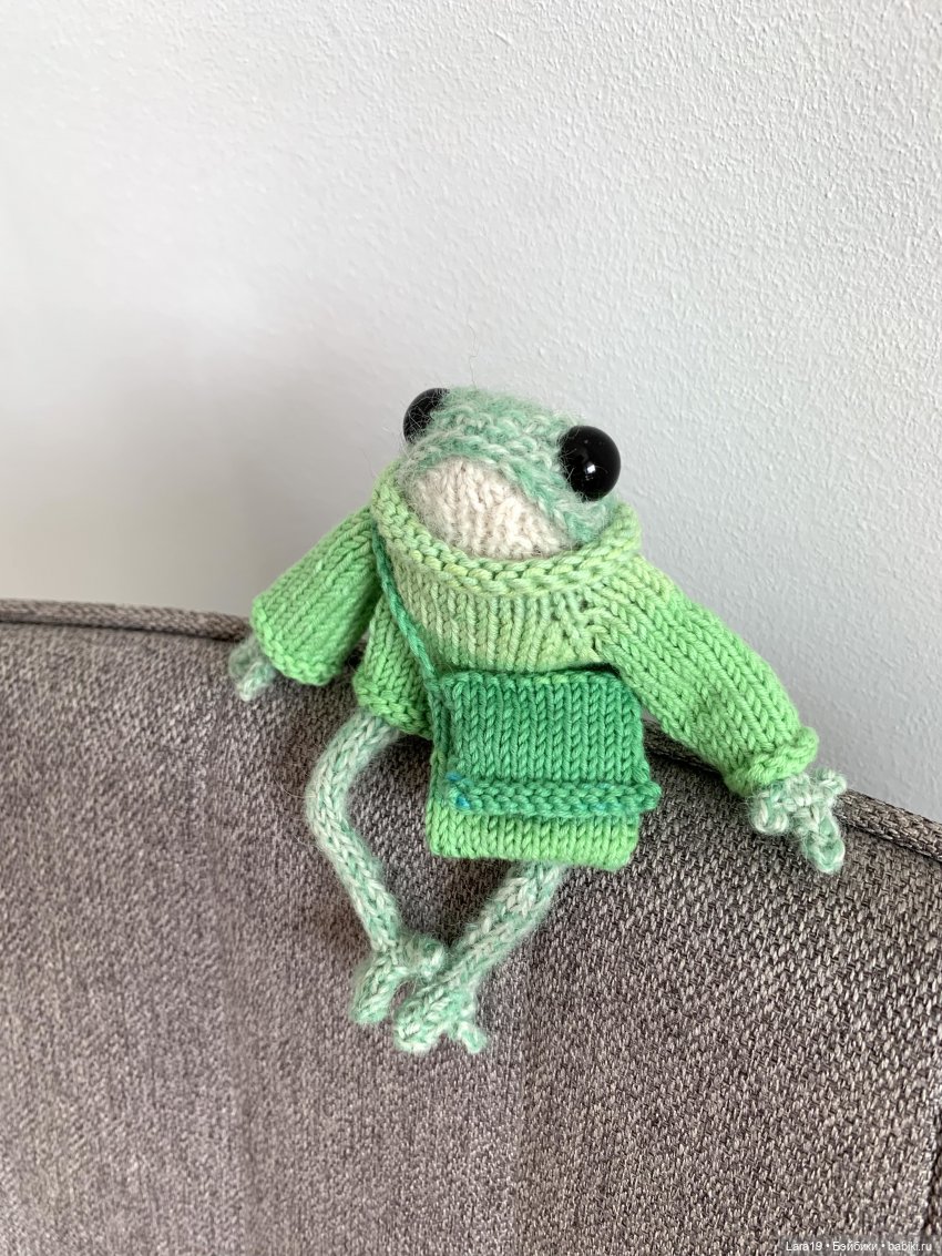 Часто он выскакивает из наших с мужем карманов (мы не боимся его помять, испачкать, Лягушонок достаточно вынослив) и становится компаньоном в путешествиях, поездках (даже когда я не планирую брать с собой игрушки).