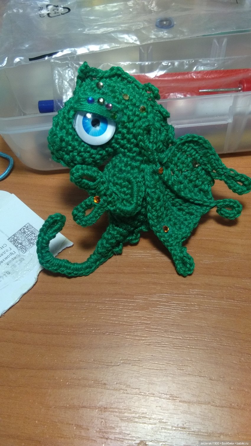 Первую такую вязаную игрушку дракошу я вязала в красной шубке и с жёлтыми глазками. На этот раз пыталась сделать Снегурочку, но никак не пошло))) Мужик мужиком!)))) Даже ресницы не помогли))) Вот бывает же такое))) Слишком брутальный дракон изначально получился у меня) Никаких Снегурочек))) В общем, вот такой вот получился дракончик) Символ 2024