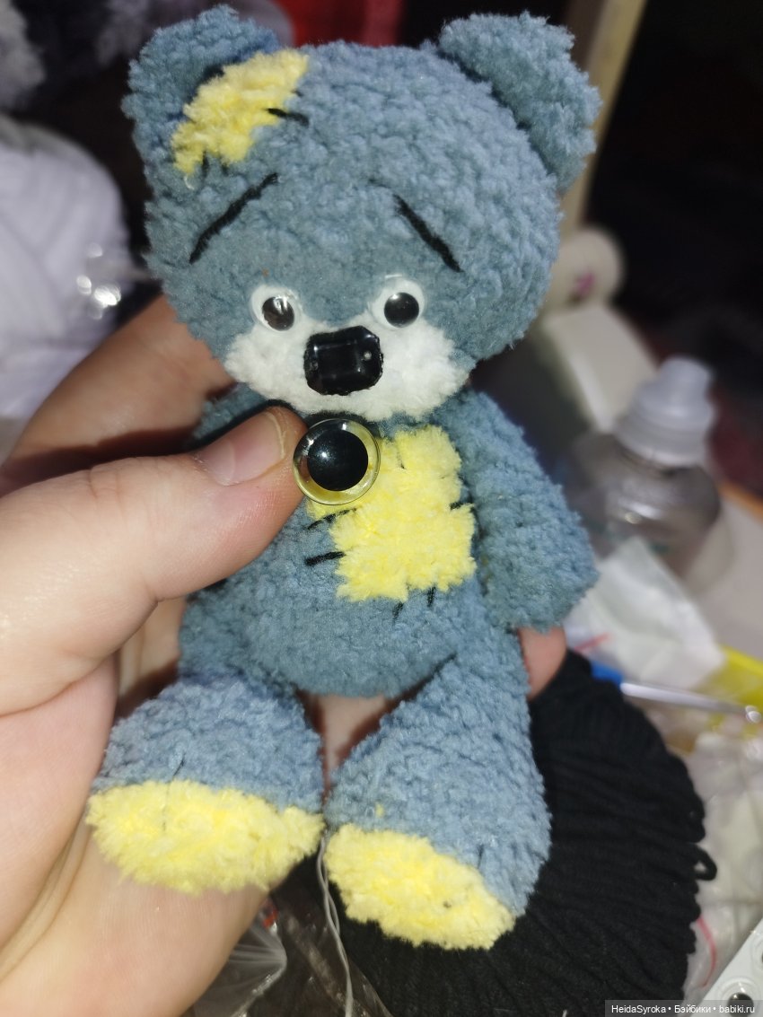 Получился прикольный, не смотря на то что небыло подходящего носика и глазок )) сын поделился глазками что мы покупали ему на подделки и носик стразинка, все приклеели, но это не то, заказали фурнитуру подходящего размера и ждём с нетерпением. А малыша сынок забрал вместо брелка ))