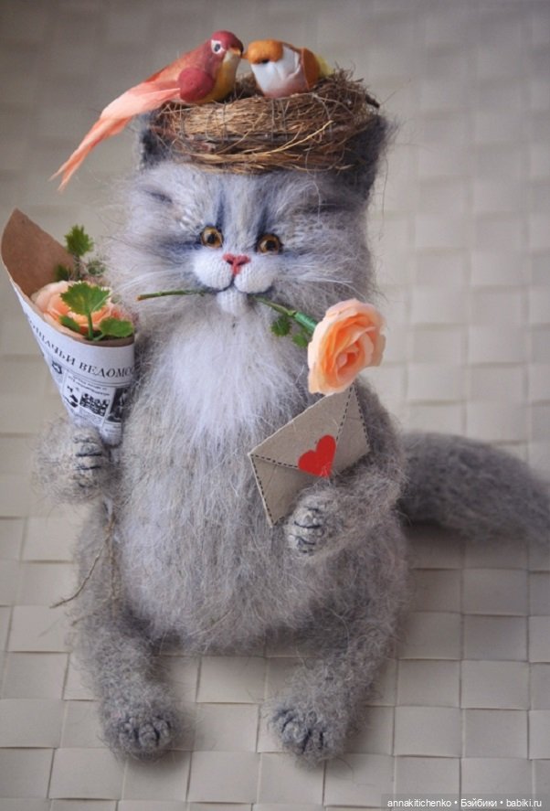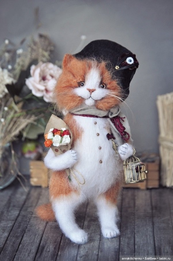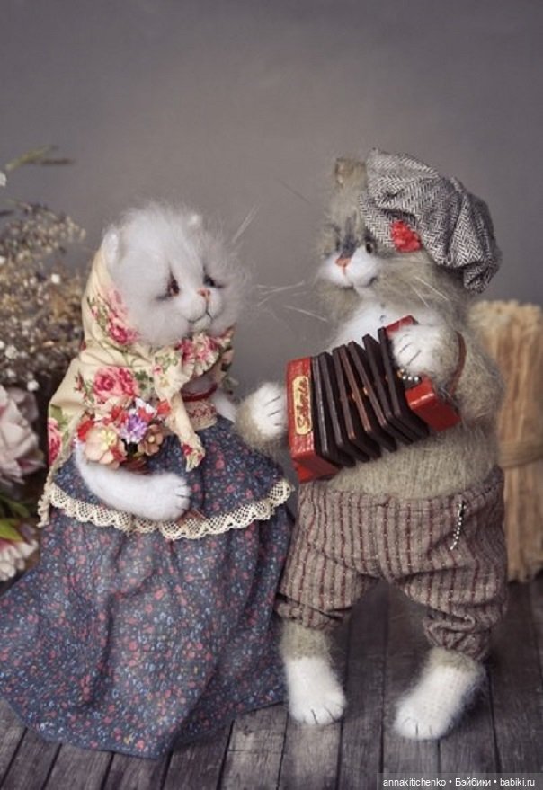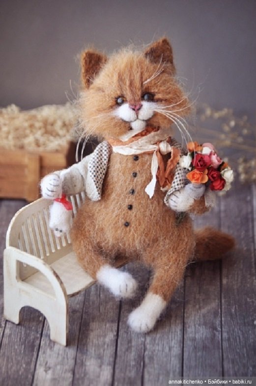 На самом деле мастер делает не только котов, а ещё и лис, собак, мишек, ёжиков и даже прекрасных кукол.