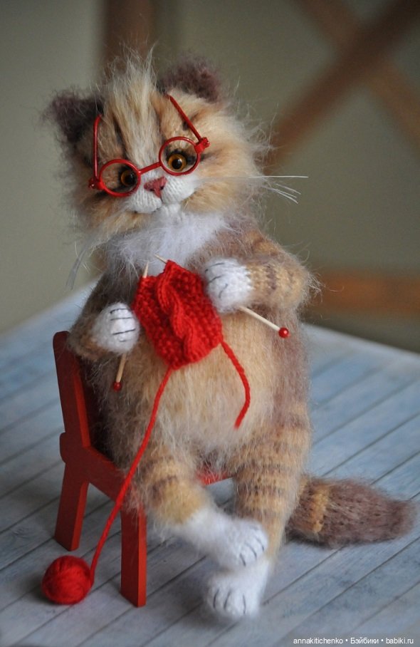 — В техническом плане животных из пряжи связать проще, так как они сами по себе пушистые. Да, котов много! Люблю я этих зверьков очень-очень! Моей первой игрушкой была кошечка, которая вяжет себе шарф. Для меня этот опыт оказался спонтанным. Он открыл новую возможность в творчестве, соединив умение вязать и рисовать. С тех пор мастерю игрушки практически без перерывов.