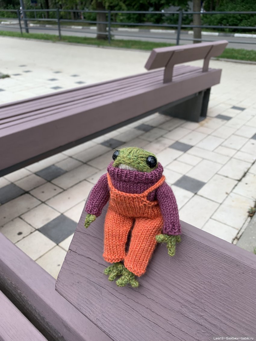 Лягушонок Гелик выбирает штаны (история про лягушат, связанных спицами по МК Клэр Гарланд).Мастера вязания игрушек спицами из пряжи