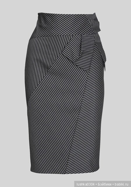 Эффектная юбка от Карен Миллен. Я долго ломала голову — зачем сбоку на передней половинке этот странный элемент? Бант не бант? Сделала лекало, попыталась сделать раскладку на полосатой (!!!) ткани :) :) :) И согласилась с дизайнером — не «прикрыть» этот узел невозможно. К сожалению.