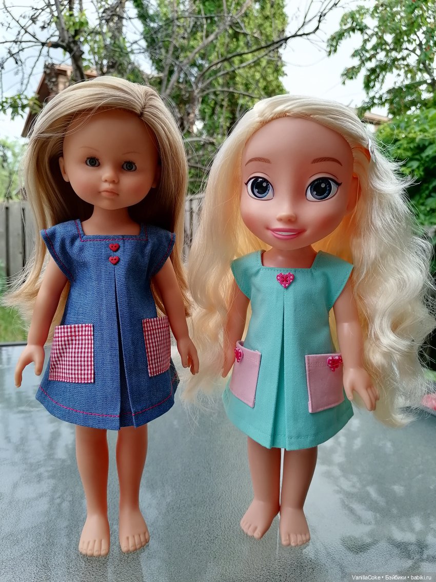 Выкройка подходит для Паола Рейна ростом 32-34 см любого года выпуска и на кукол с похожей фигурой — Бержуан, Антонио Хуан, Ллоренс 30 см и Руби Ред SIBLIES 31 см. Объем груди у них немного различается, для более стройных фигурок застежку нужно перенести чуть дальше от края.