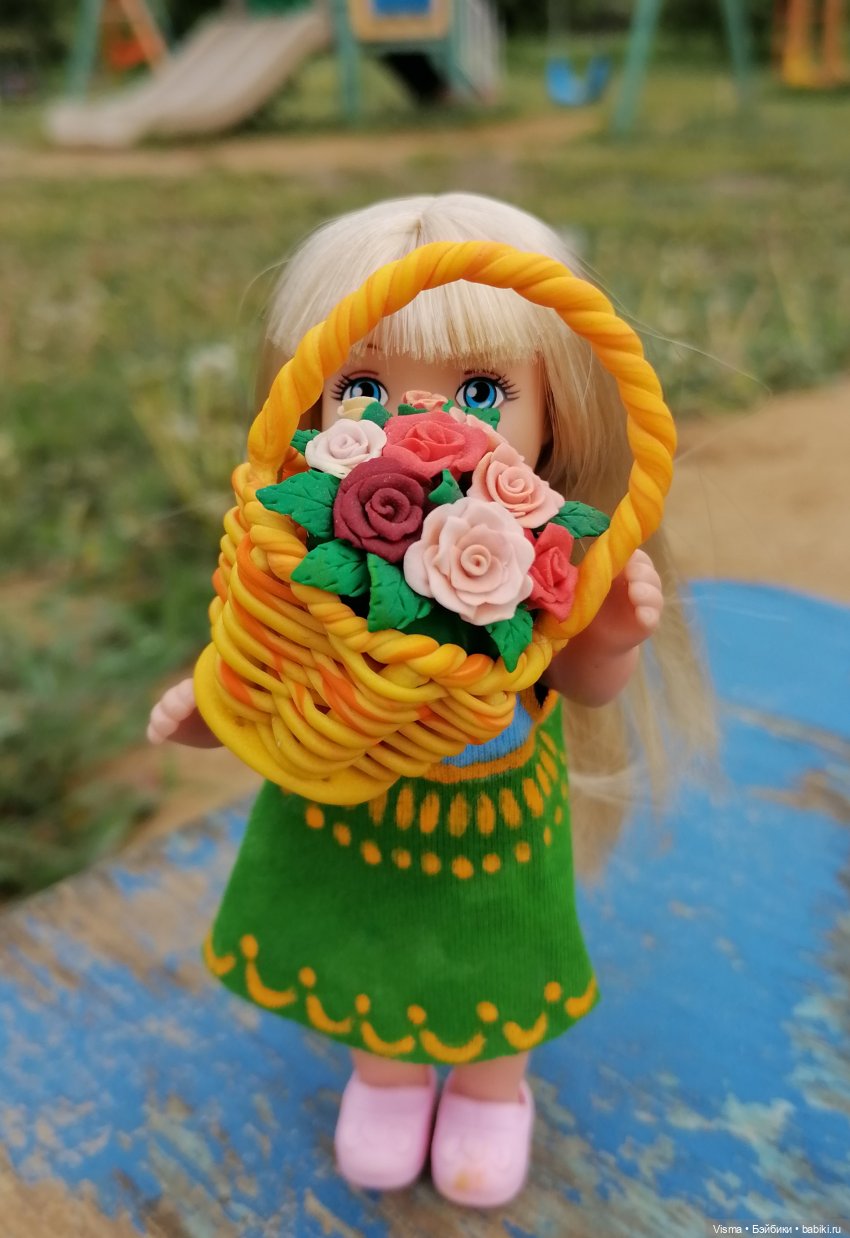 Как раз у меня была нераспакованная коробка с подходящей кукляшкой. Малышка в коробке была вот в этом розовом сарафане