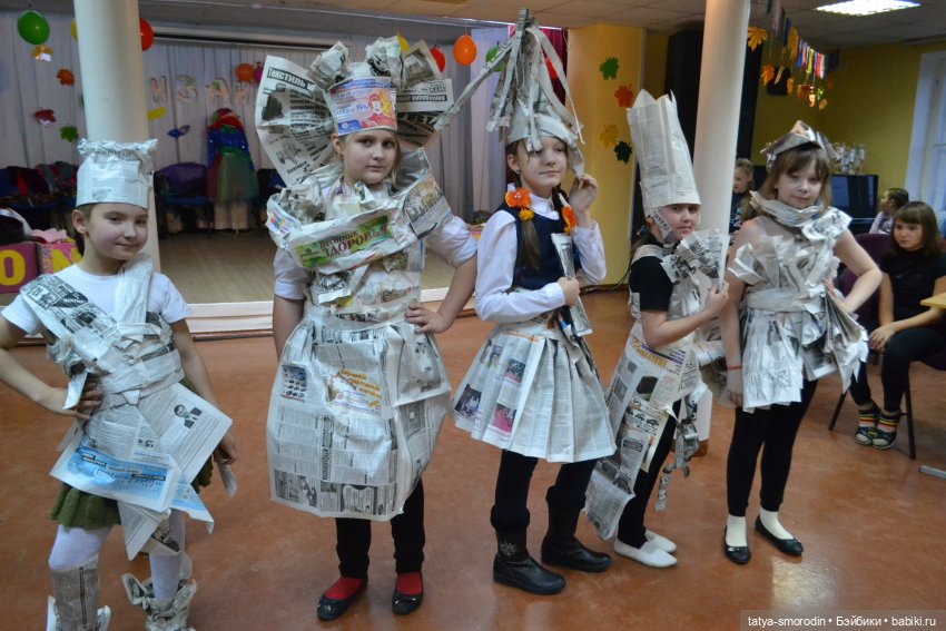 Газета, бумага для принтера. Чтобы уберечь кукол от типографской краски, газету здесь сначала наклевала на белую бумагу.