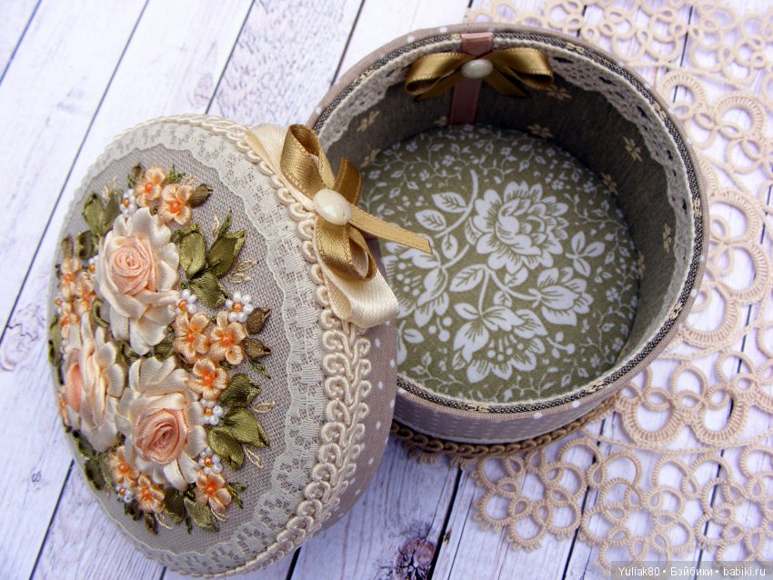 Шкатулки, вышитые лентами.