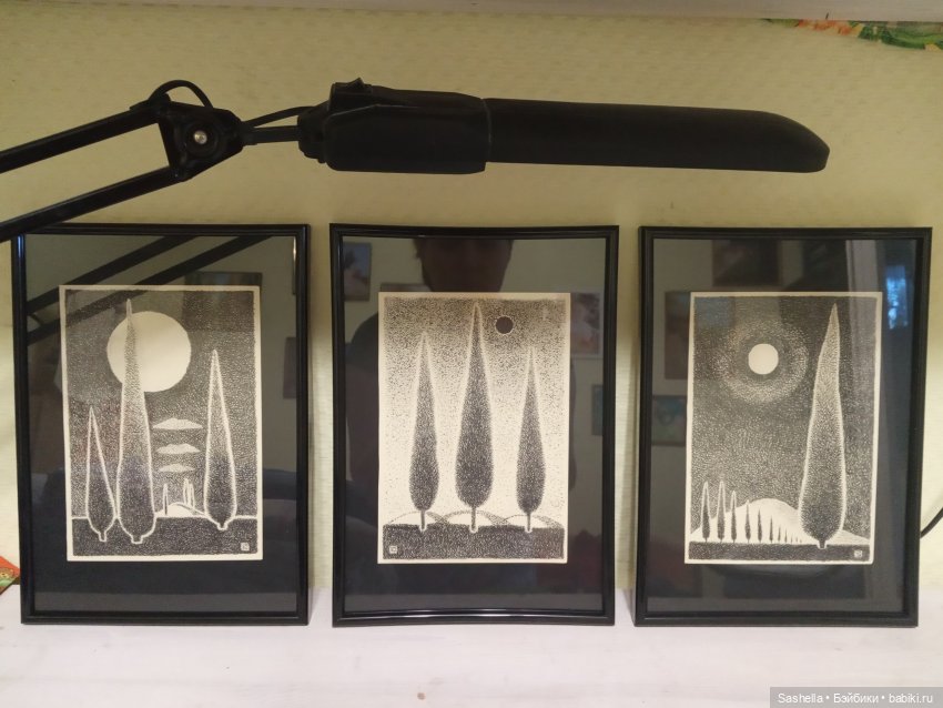 Мне очень нравятся эти три яркие картинки . Они украшают наш дом. Когда я смотрю на них, у меня поднимается настроение. Вышивала моя Мама.