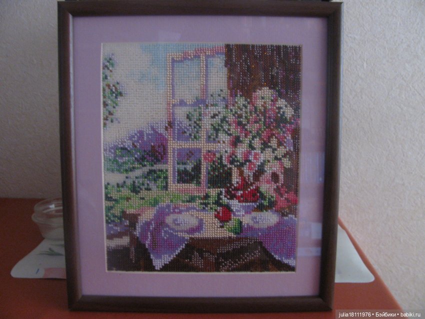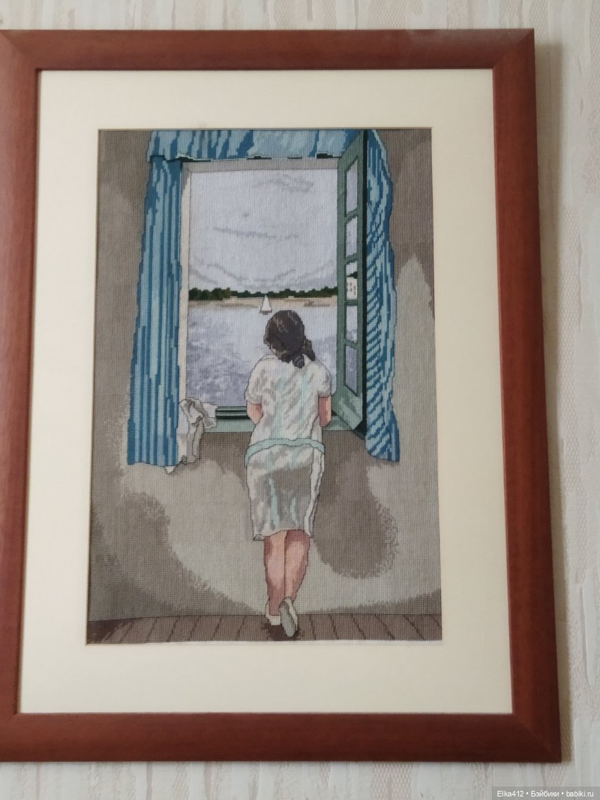 Об одной работе хочется рассказать особо. Был у меня очень тяжёлый период — я лежала с малышкой в больнице. Было очень страшно, реанимация, врачи ничего не гарантировали. А я могла только молиться и вышивать, запрещая себе плакать… Когда вышивала, твердили одну мысль: закончу, и моя девочка поправится. Знаете, сбылось! Вот она, эта картина, это окошко света: