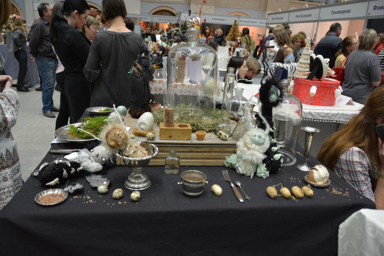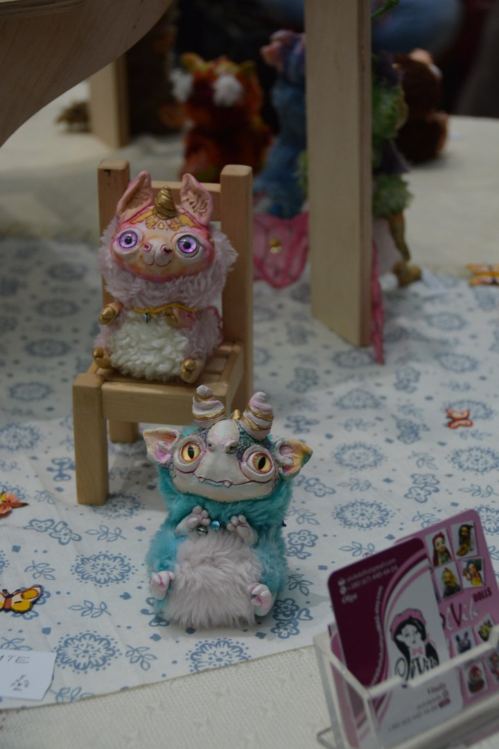 Когда-то ее работы привели меня в дикий восторг, особенно девочка-вампирчик (была на предыдущих выставках), в этот же раз как-то я прошла совершенно спокойно мимо этого стола. Видимо, мои ожидание не оправдались — ждала что-то новое интересное, ан нет — этих кукол я уже видила на Тишинке