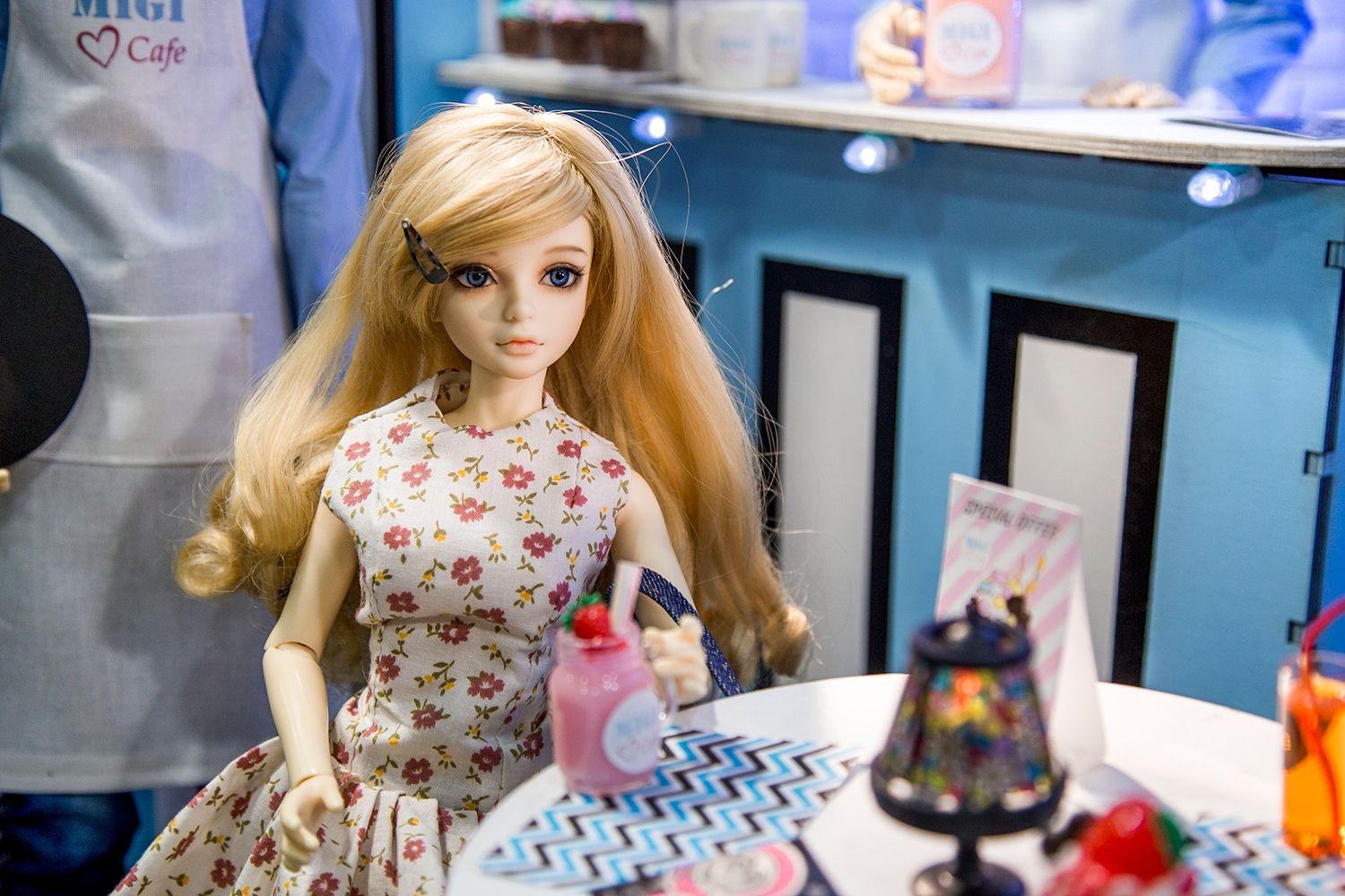 Вместе с командой девушек из четырех человек мы решили организовать фан-стенд одной из моих любимых фирм — Migidoll. Так как я была инициатором сделать такой стенд, то большая часть оформления легла на мои плечи. Готовиться к выставке мы начали почти за полгода, чтобы было достаточно времени исправить все предстоящие ошибки)) Вместе с командой мы решили, что будем делать кафе, так как всем не хотелось сильно менять образы своих кукол. Так что идея Migi-кафе, куда может прийти любой посетитель, будь то лис или эпатажный певец, стало для нас спасением