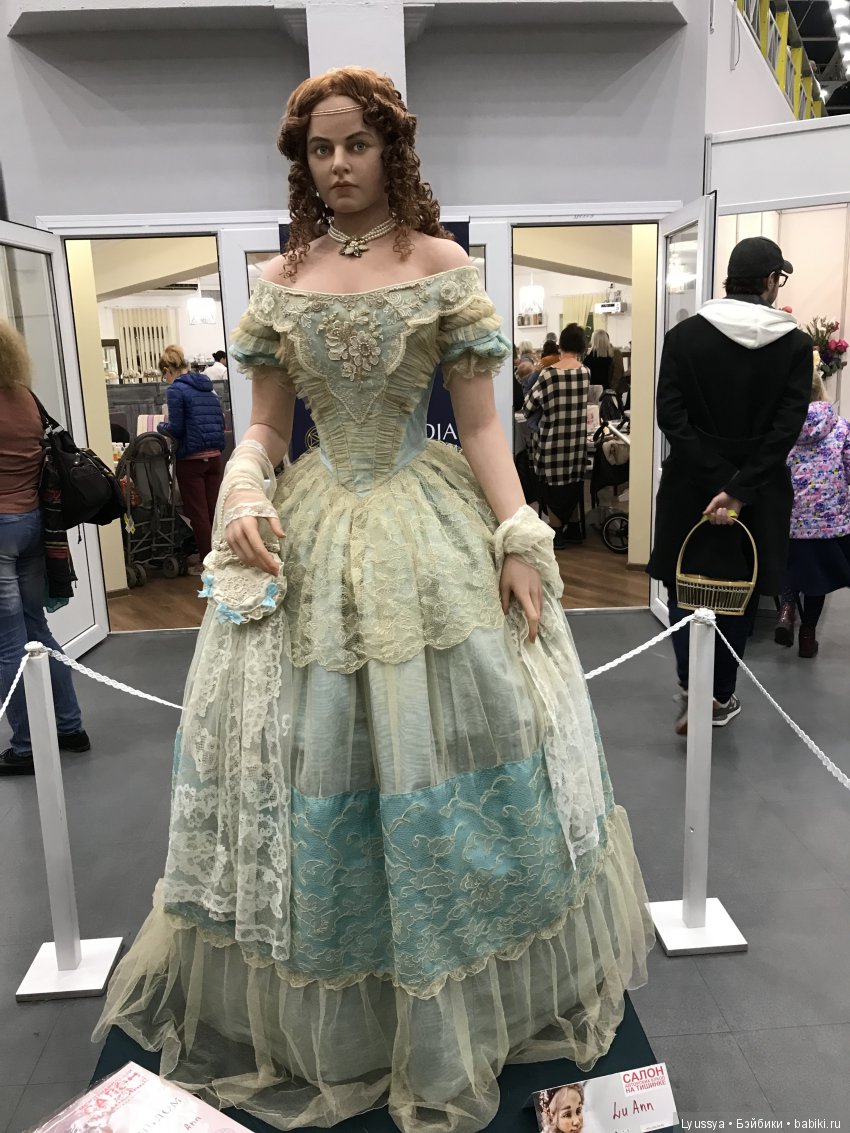 В этот раз моя работа стояла на почетном месте, на входной группе встречая гостей выставки Спасибо большое любимой Светочке за такой подарок работу можно было рассмотреть со всех сторон, ведь она стояла в настоящем антикварном платье 1855 года