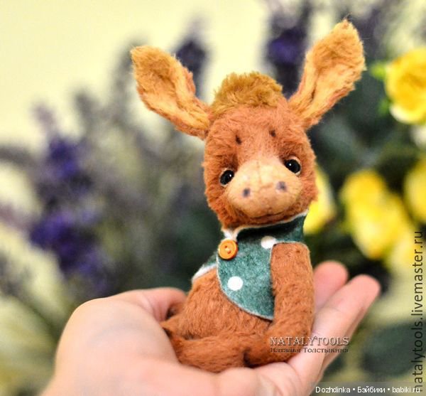 А рыжий — это бегомотик, хотя я его вижу как лосика, автор не обиделась, говорит, что каждый в нем видит своего, кто-то дракончика, кто-то ослика, а я лосика))) мне он ооооочень понравился! Тяжёленький, стоит самостоятельно и очень уверенно! И всего 4000 руб: