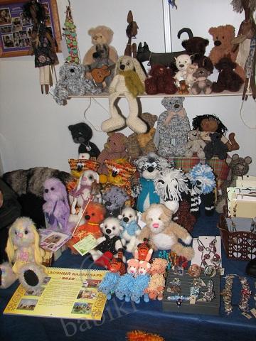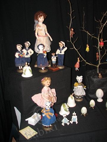 Итак, идем дальше. Рассматриваем и фотографируем мишек, зайчиков, кукол авторских из пластики, папье-маше, вязанных, сшитых, сваляных из шерсти, старинных и… опять мама: «Татьяна Цорн!!! Смотри, какие хорошенькие!» Мы дошли-таки, точнее нашли РЕБОРНОВ!!! Стенд Татьяны Цорн и Галины Гайсиной: