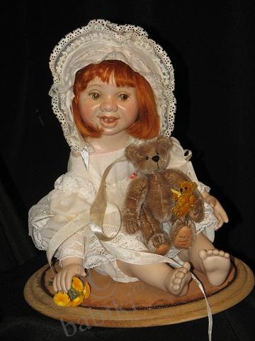 Со всех сторон мишки, мишки, мишки, зайчики, авторские куклы. Глазами пыталась найти знакомые лица и кукол… И вот, проходя в одном из рядов, мама воскликнула: «Вот, смотри, куклы!!!». Это оказались куклы Герлинды Фейзер и Дорис Штаннат. Девочки, и я и мама плакали от увиденного. Герлинде и Дорис очень милые и приятные женщины. Охотно позировали и показывали свои творения. Пишу и плачу. Девочки, это ВОСТОРГ!!! Я такое видела впервые! Фотограф из меня никакой, да и руки тряслись от волнения, но вот что у меня получилось: