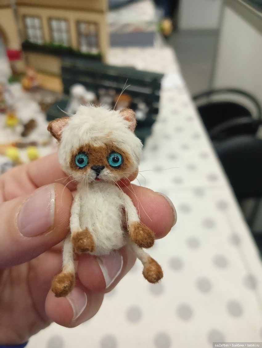 Вот и я побывала на Тишинке спустя год) В этом году выставка кажется по обширнее, есть чем полюбоваться, оставить заметочку насчёт новых хотелок, привезла с собой домой кучу положительных эмоций. В том году я приехала с выставки с Эллой от медоудоллс, в этом привезла ей друга. Давно я хотела котика из этой серии и на этой выставке имела знакомство с самой автором. Игрушечки её просто замечательные, котов хотелось всех мастей) Собачки, мышки, лягушечки у неё тоже замечательные, ну, а про её кукленок даже и говорить не надо, они всё мизерные, но мимишные, сколько же труда в таких малявочек вложено. Ой, отошла от темы. Выставка конечно очень многообразна и выбор есть для всех. Сфотографировала только половину, на большее сил не хватило, всю выставку конечно очень сложно охватить. Это только первая часть того, что я смогла запечатлеть. Конечно для меня самая интересная, куклы Филлиповой это просто мечта, сказка их я искала первыми, они из частной коллекции. Далее видела авторов, чьи куклы похожи, но все-таки не Филлиповы, хотя тоже неплохи. Рыжуля произвела фурор для меня, настолько она реалистична, настолько живая, очень много мелких деталей, её хотелось рассматривать и рассматривать со всех сторон, долго от неё я не могла отойти. Спросить о цене постеснялась, но осталась мечта))) Трамвайчик тоже сделал своё дело, такой домой не хотелось бы, но впечатление оставил сильное, автору Браво!!!