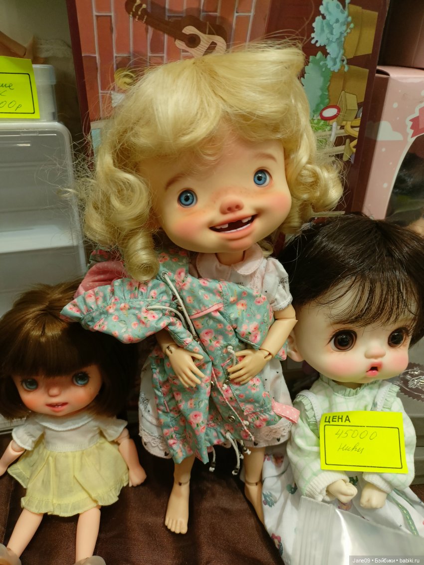 Так и микро — пупсики у Марии. От предложения взять последних в руки я с трепетом отказалась, страшно испортить! А какие у неё платья на маленьких кукол! На смешной девочке без зубов я тоже залипла на стенде Eriden