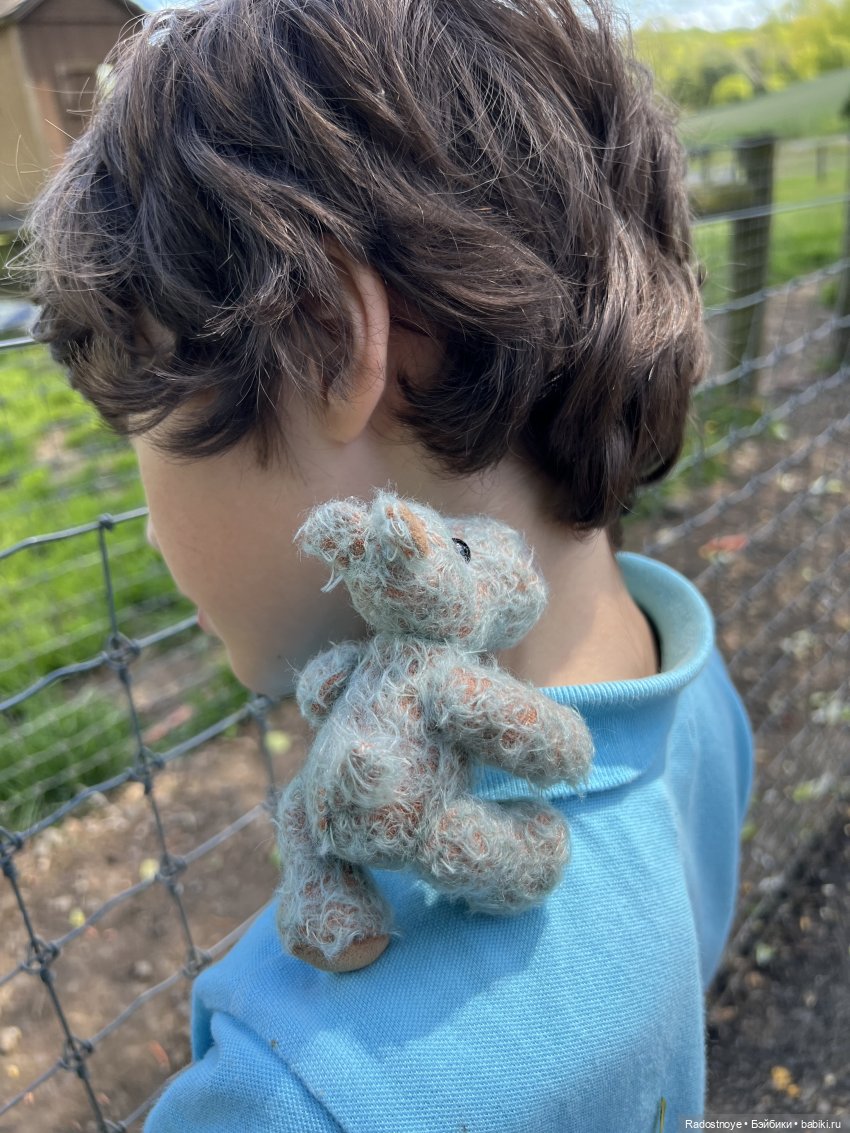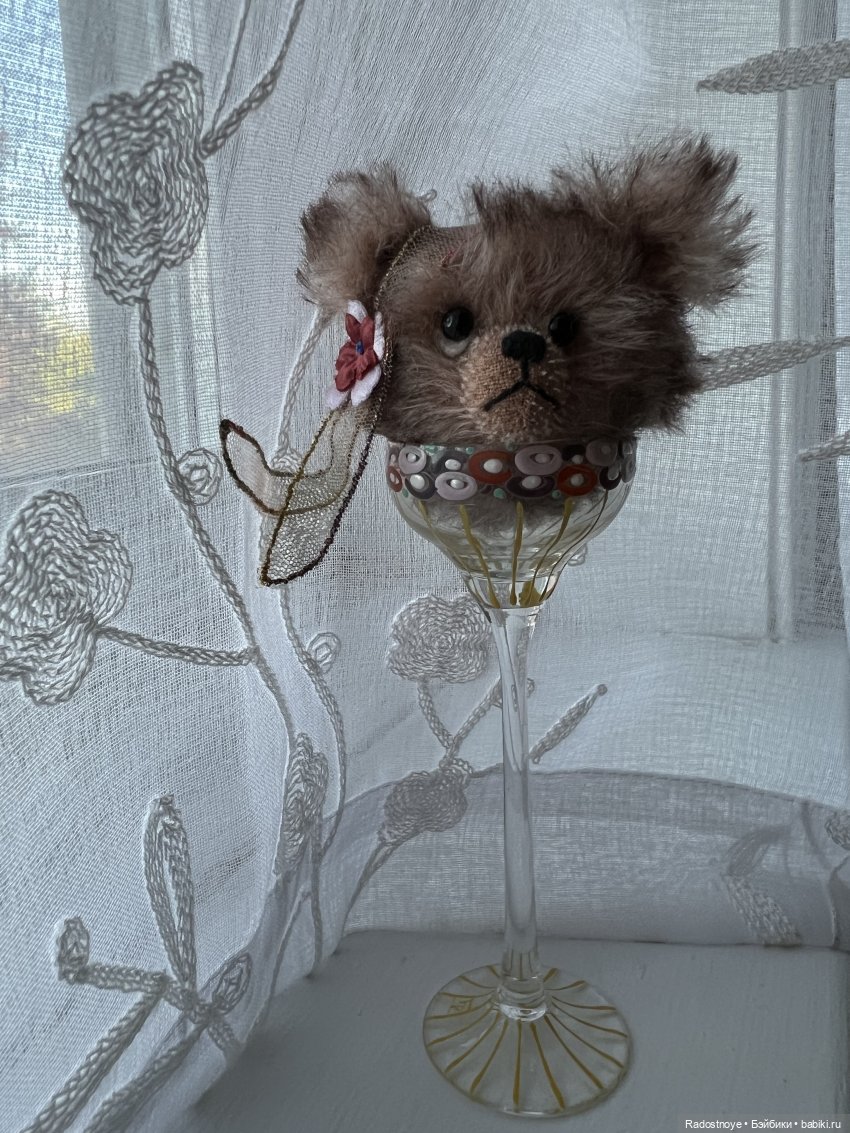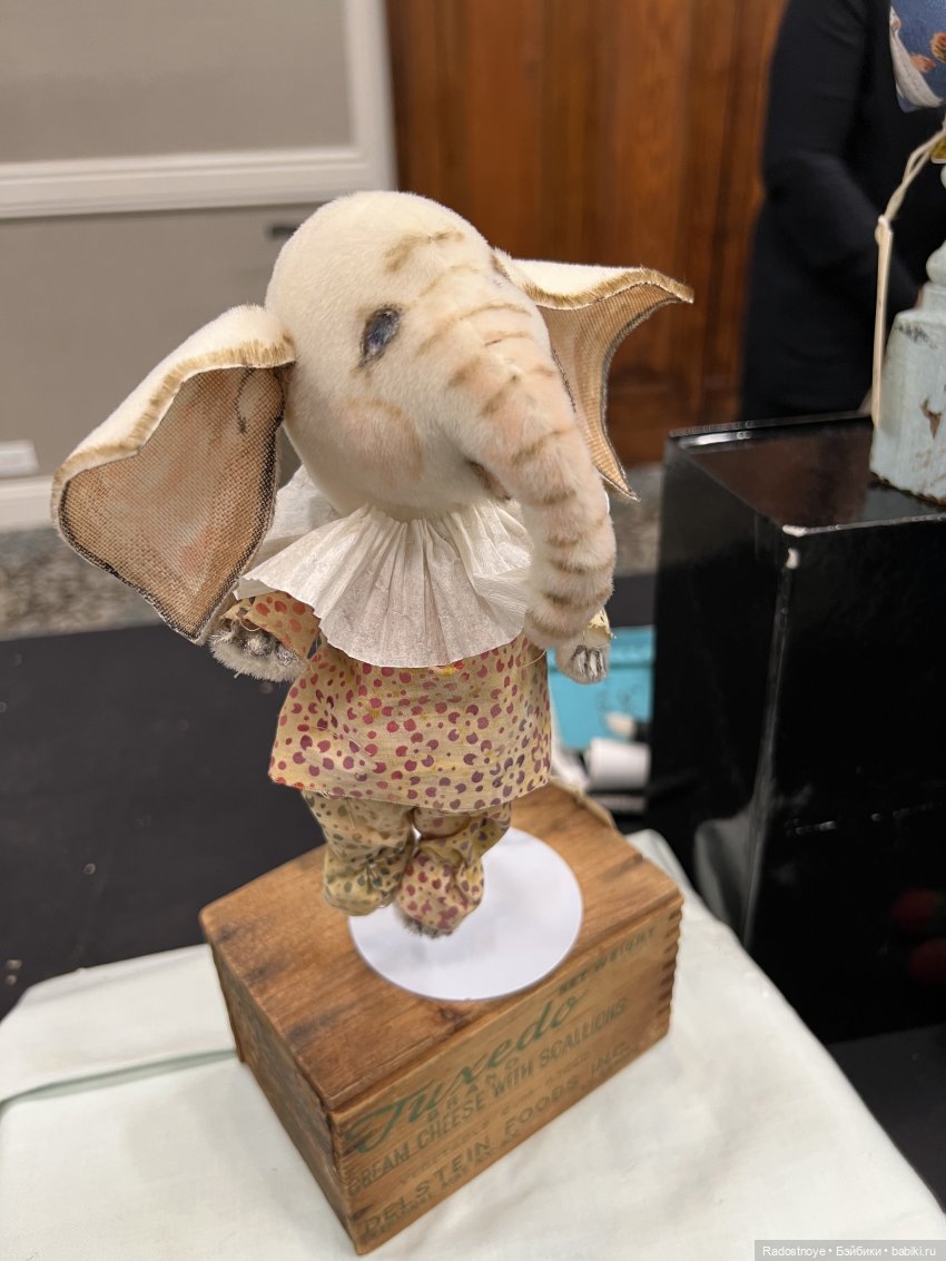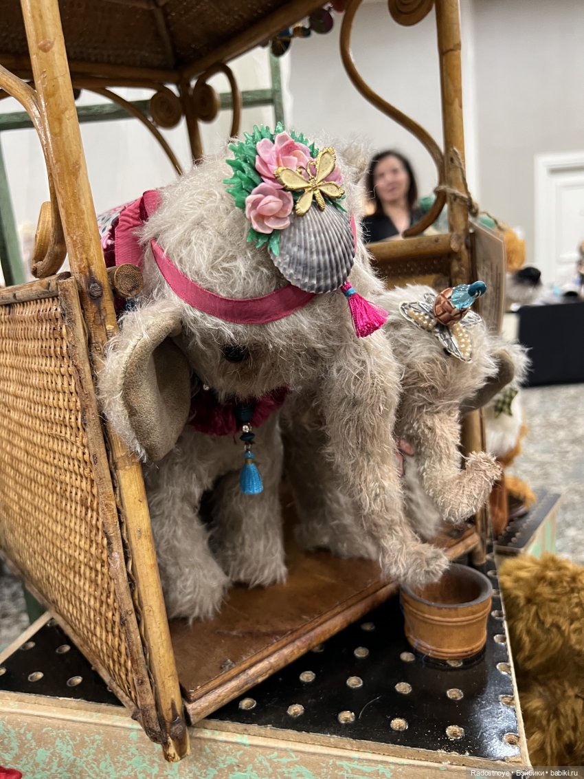 Эта автор прилетела из Великобритании. Все ее мишки разобрали уже, кроме одного — с рогами. Ее знак — это кристаллик в носу.