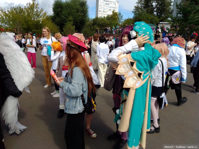 Азия в этом году была не простая, а юбилейная — 20 лет фесту😮 Поэтому на всех углах и шарики, и тортики, и вот это все. И что особенно радует, половина посетителей и косплееров не школьницы, и это классно на самом деле.Я не так чтоб сильно эйджист😅, но бабульке киëми в этом diversity было комфортно)
