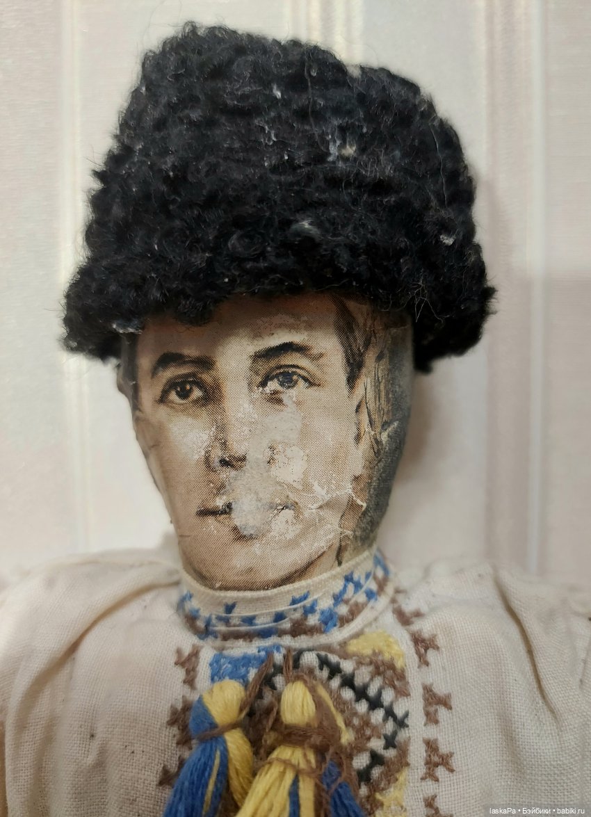 Какое-то время у меня «погостила» такая парочка (сейчас они в Музее кукол в Светлогорске). Куклы, похоже, сделаны были какой-то поклонницей актёра Полонского (это сто лет назад, на минуточку). У куклы, изображающей Полонского, как раз фотография на лице. Да, куклы выполнены несколько кустарно, с нарушением пропорций, но тем не менее видно, что с уважением и любовью!