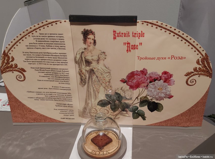 На выставке «Изменчивая мода» тоже есть образцы парфюма, воссозданные Музеем парфюмерии из Санкт-Петербурга. Крышечка клона снимается и в ней можно почувствовать аромат 19 века. А ещё были (и будут) лекции Элины Арсеньевой, коллекционера парфюмерии (но я запахи плохо запоминаю, так что не ходила).