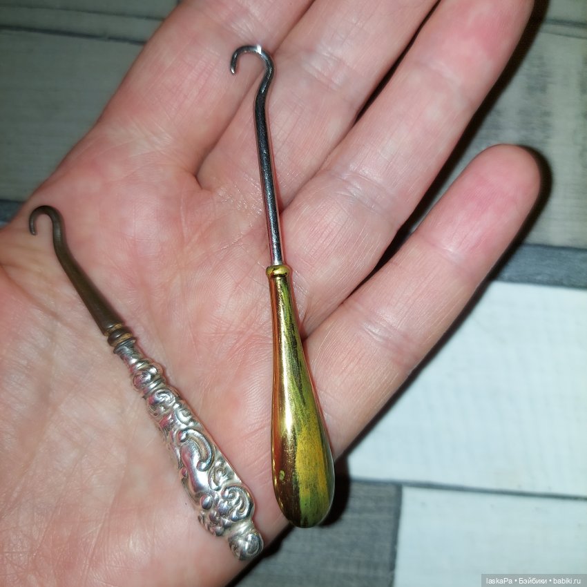И да, выяснила вопрос, который меня давно мучил, — крючки. Кто-то их называет корсетными. Спросила специально Назима Султановича. Он усмехнулся: «Не знаю, кто это придумал, ну как крючок можно использовать для корсета? Крючки — застегивать пуговицы на ботинках. Ну и маленькие — застегивать пуговки на перчатках.»