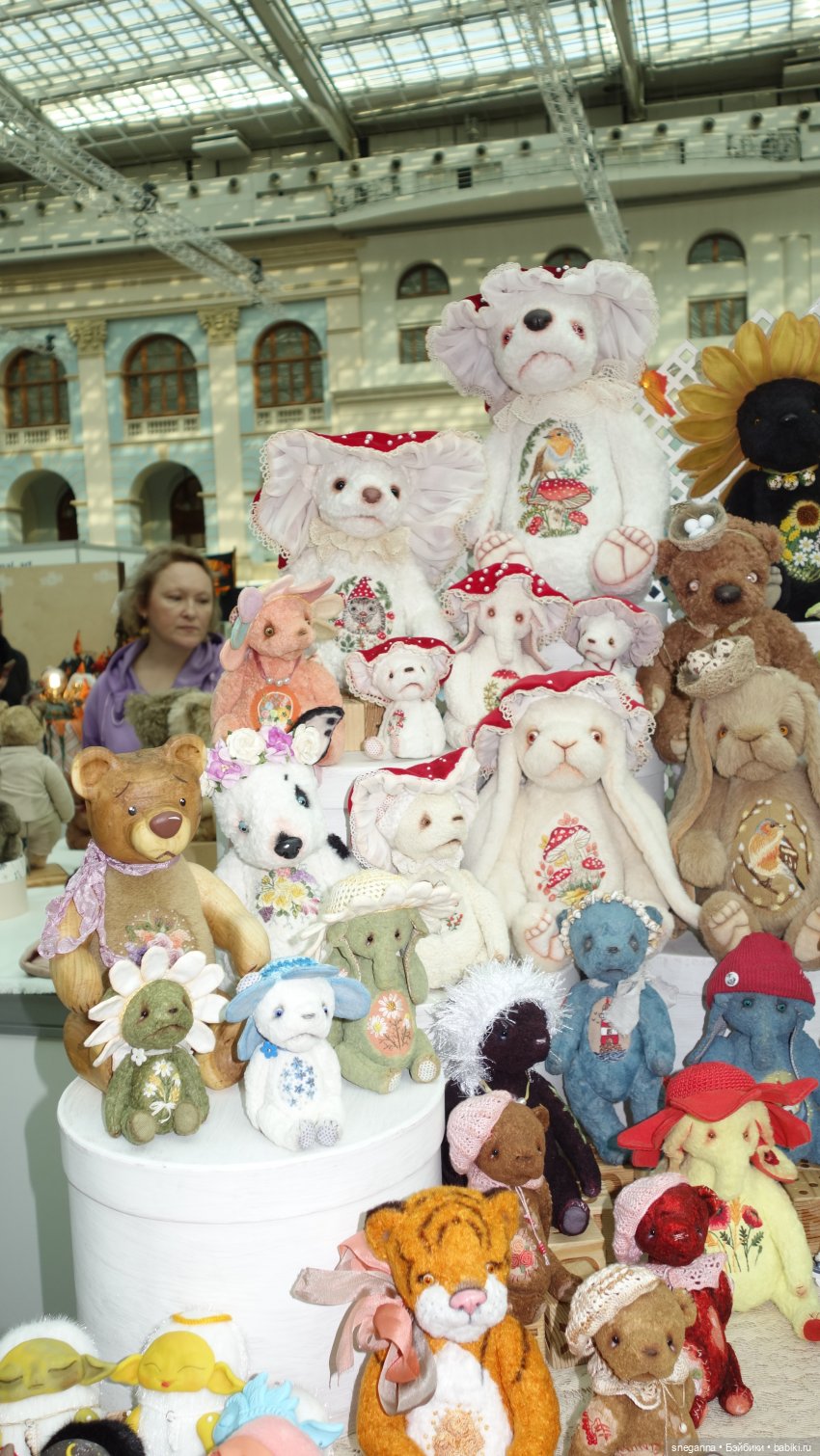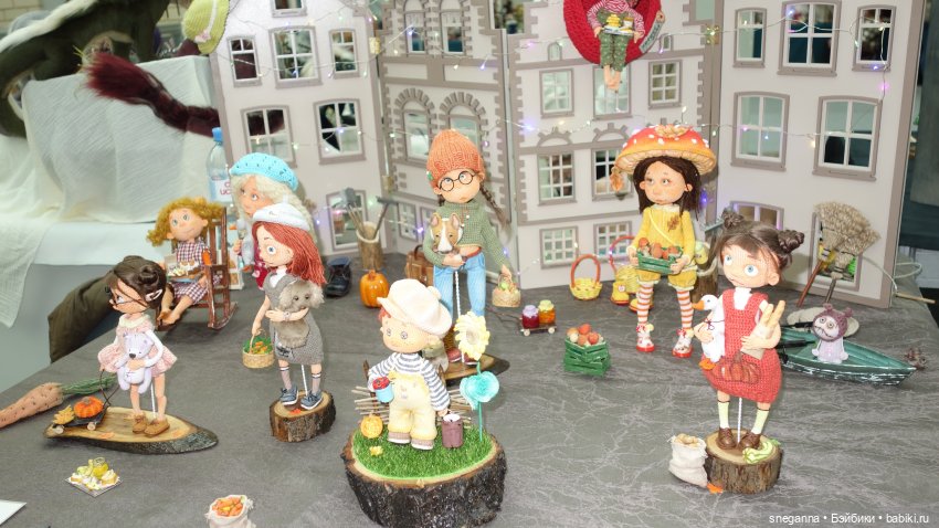 Здравствуйте, дорогие любители кукол и сказочного мира игрушек! Сегодня я по традиции была на Выставке «Искусство куклы» в Гостином дворе. Спешу поделиться с вами своими впечатлениями! Итак, выставка в Гостином дворе — день первый! Люблю быть на выставке в первый день: представлены практически все экспонаты, которые к этому событию готовили участники. Четверг — первая половина дня. еще не очень многолюдно и можно подойти все рассмотреть, не толкаясь и не отстаивая очереди. Настроение и мастеров и у гостей очень позитивное, впереди еще три дня выставки. Люди подходят, фотографируют, интересуются, завязывают знакомства. Немного необычно, что выставка проходит осенью, а не зимой, перед новым годом, как было раньше. Из плюсов, все таки, что ее вернули из Экспоцентра в Гостиный двор, от меня лично огромное за это Спасибо организаторам! У меня на выставке присутствует стенд моей подруги — Леночки (Rioki), к которой я пошла сразу, как приехала. С нее и начнем просмотр.