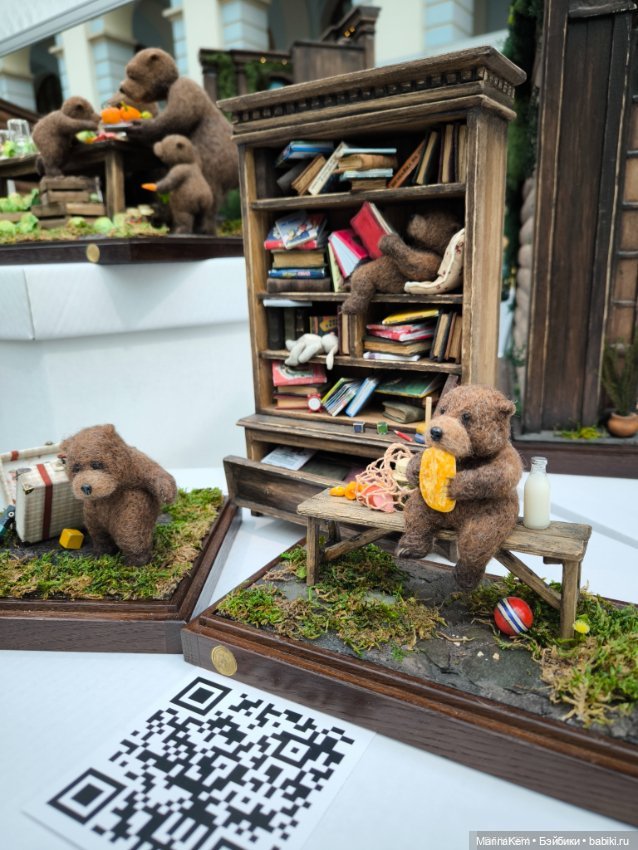 Медведики занимаются милыми семейными делами, такие теплые чувства от этих чудо-работ. Можно долго разглядывать, благо в начале выставочного дня не очень много народа!