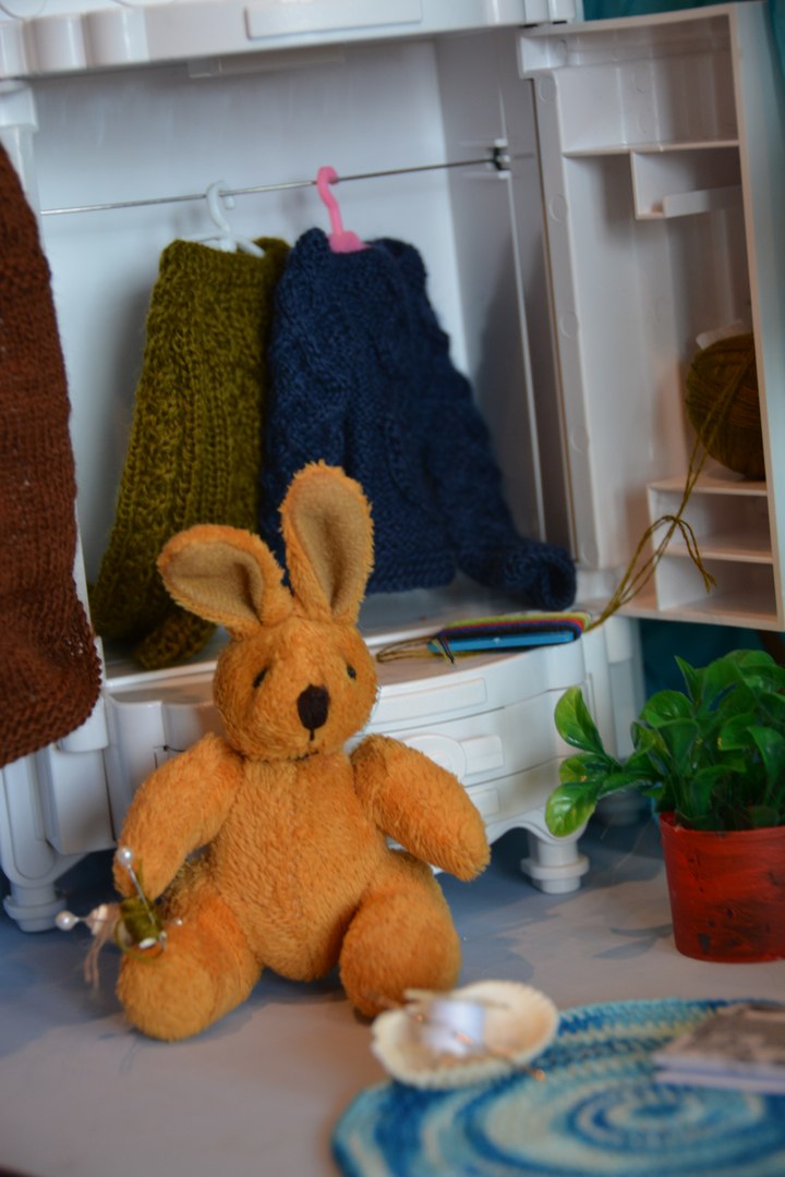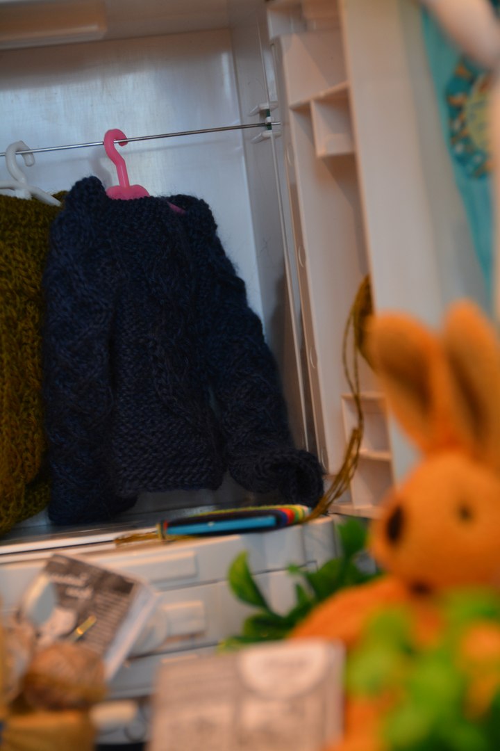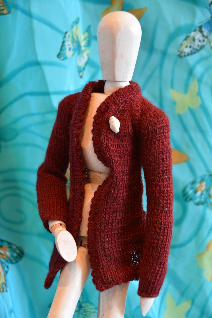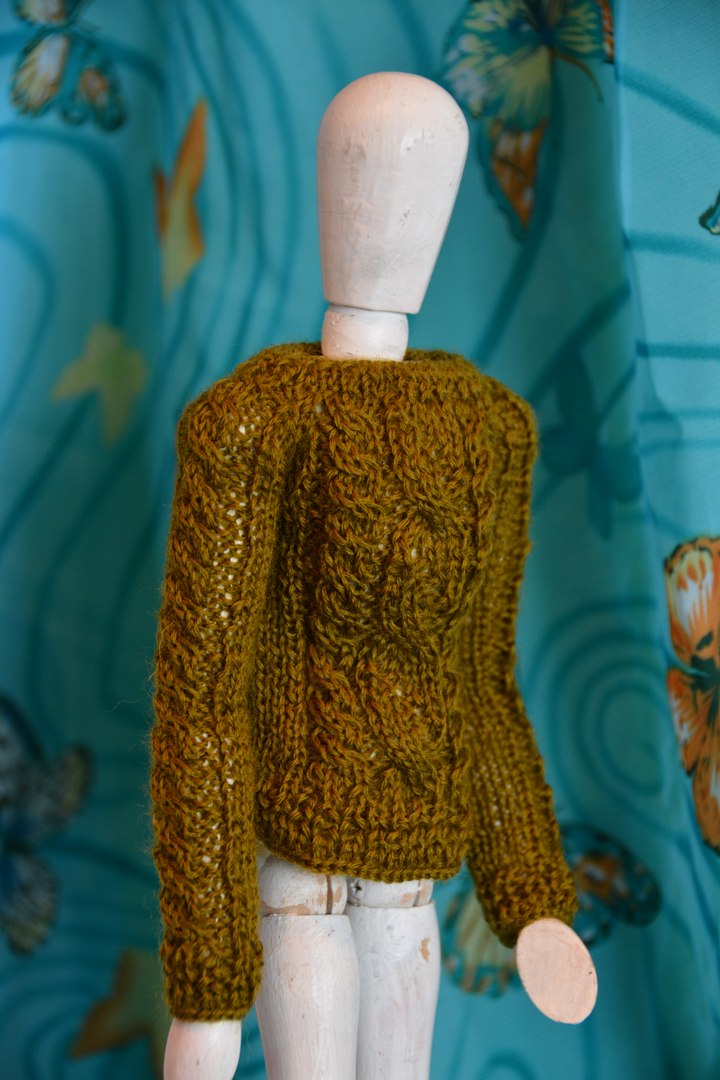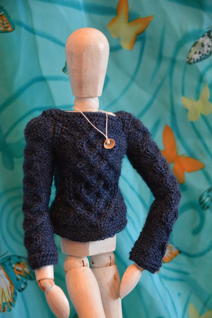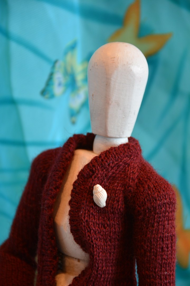 Поскольку у меня нет кукол в подходящем размере и масштабе, то пришлось все вещи вязать исключительно ориентируясь на мерки, а для фотосессии уговаривать поучаствовать в примерке Георгия — деревянного шарнирного референса.