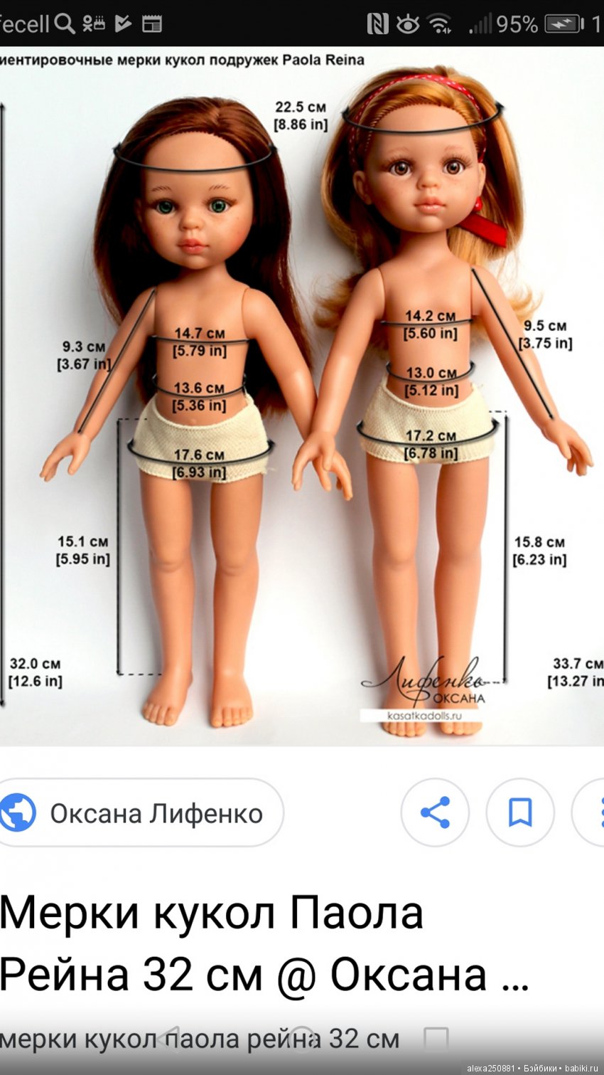 Поняла, что наша красавица, наверное, на новом теле, раз куплена в магазине неделю назад. Два дня изучала все публикации на нашем сайте, но не нашла мерок для шитья-вязания на этих куколок. Для других кукол есть замечательные топики со всеми-всеми мерками, по куклам Паола Рейна таких не нашла.