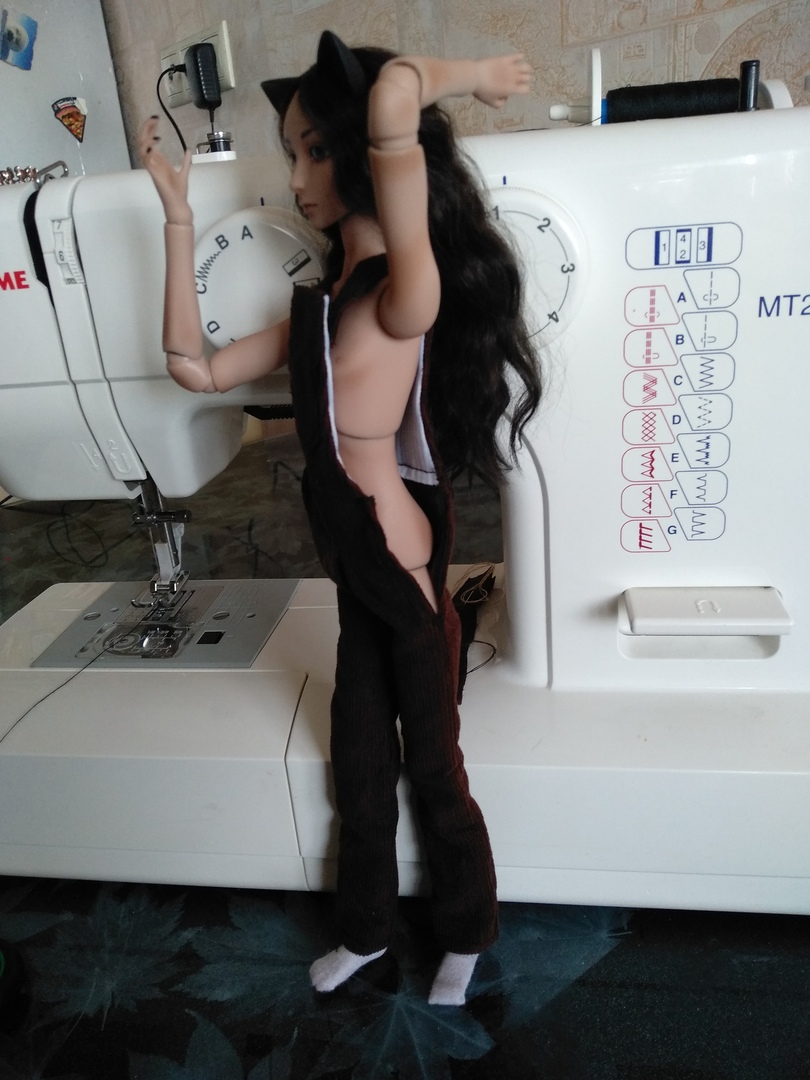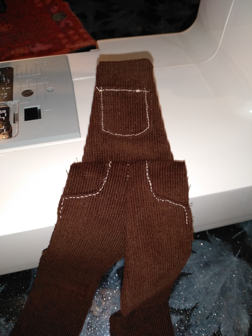 Осталось только достроить верхнюю часть и перенести застёжку с переда штанов на бока.