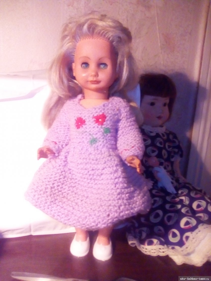 Понимая, что пряжа на вес золота, я решила на ерунду не распыляться и сразу принялась за вязание кукольной одежды. Я хотела до всего додуматься сама. Это сей час я со своими дочерями и шью, и вяжу, и лепка и все что угодно) а раньше это считалось баловством — вязать на кукол! А уж фотографировать кукол, даже и в голову бы не пришло. Пленка, фото печать — это было событие)