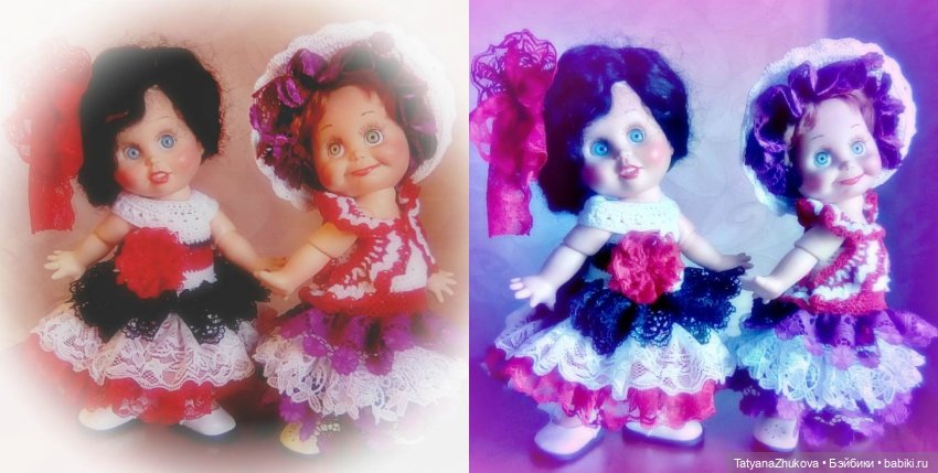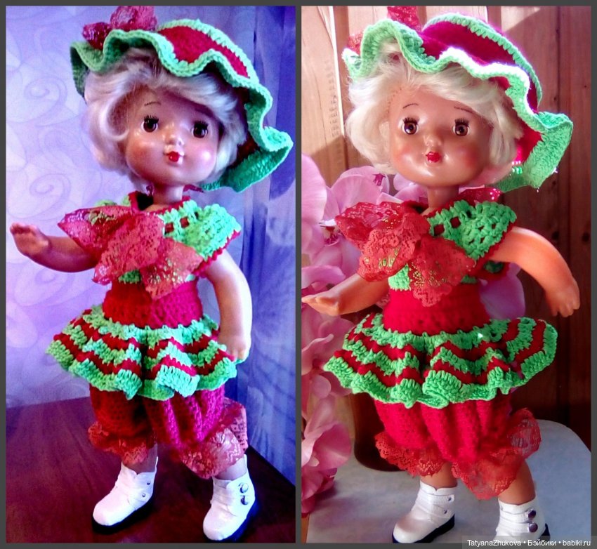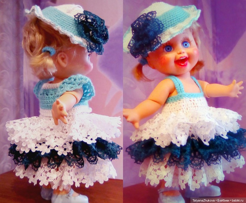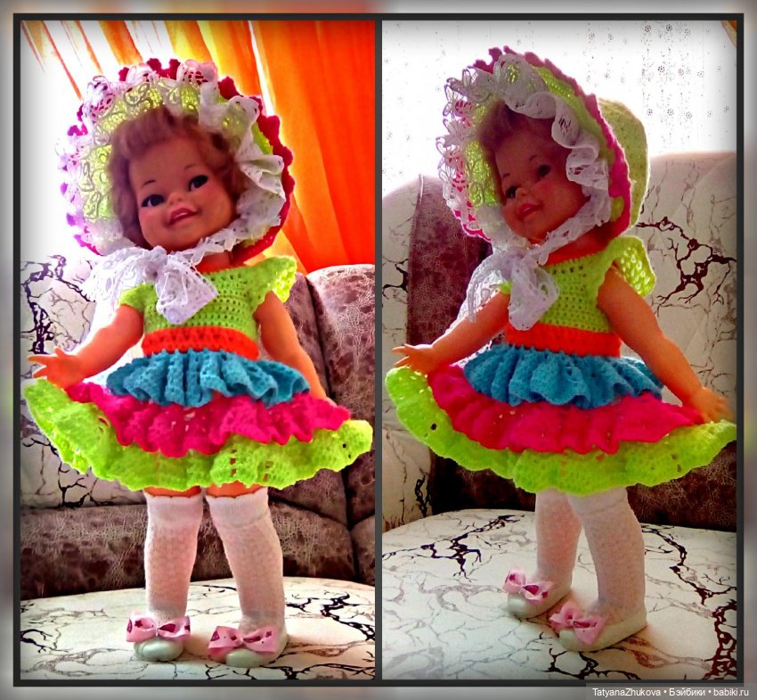 Добрый вечер, единомышленники и мастера! Кто вяжет для кукол (и не только) крючком? Я обожаю вязать крючком. Ещё в школе на уроках труда в 4-м классе я научилась вязать крючком, громко сказано — научилась. Простые цепочки из воздушных петель и кружки столбиками без накидов. Потом это надолго забылось. Затем в классе 8-м я начала вязать спицами, связала жилет под брюки и батник, кто был молодым в 70-хх, тот помнит эти модные жилеты с V -образным вырезом. Их носили все: и мальчики, и девочки. Мастерство твязания спицами росло из года в год. А когда вышла замуж и появились дети — две дочки (а годы были трудные — 80-ые), вязание спицами очень пригодилось. Дочки были обвязаны с ног до головы. Вырастали из одной одежды, это всё распускалось и вязалась другая одежда. Потом, когда уже дети выросли и в нашей стране наладилась экономика (не нужно было вязать одежду), я вспомнила про крючок и стала вязать салфетки: покупала в киосках «СоюзПечать» журналы «Валентина» и училась по ним вязанию крючком. Так вот, дорогие сохоббиты, вы не устали от моего долгого лирического вступления? Вот теперь для меня вязание крючком это отдых, также очень удобно взять работу с собой в дорогу — места занимает мизер, не нужно бояться, что если выскочит крючок — распустятся петли (как это бывает в вязании спицами). А теперь я подошла к главной теме моего топика: хочу показать наряды, связанные крючком за 4 года для моих кукол. Ну, а теперь выдохнули — начнётся марафон. Кто его выдержит, огромное спасибо!
