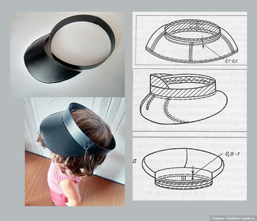 Козырёк и околыш-основа вырезаны из плотной чёрной пластиковой папки для бумаг. Выкройку верха фуражки я делала, глядя на схему, и несколько раз переделывала, пока не получила нужную кривизну по бокам. Фуражка тоже из габардина и на подкладке из белой сорочечной ткани.