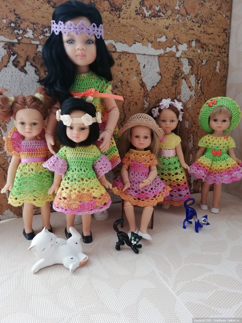 Люблю кукол в платьях. Наверное, это еще из детства — девочки ведь любят платья)) Ну, или любили… Сейчас совершенно другие увлечения, у современных девочек то. А я в своем детстве мечтала о бальных платьях… и для себя, и для своих кукол. Когда-нибудь я все-таки осуществлю свою мечту, и создам для моих куколок настоящие бальные платья… А пока что мои девочки покажут простенькие, но по-своему, красивые наряды)) Не судите строго))