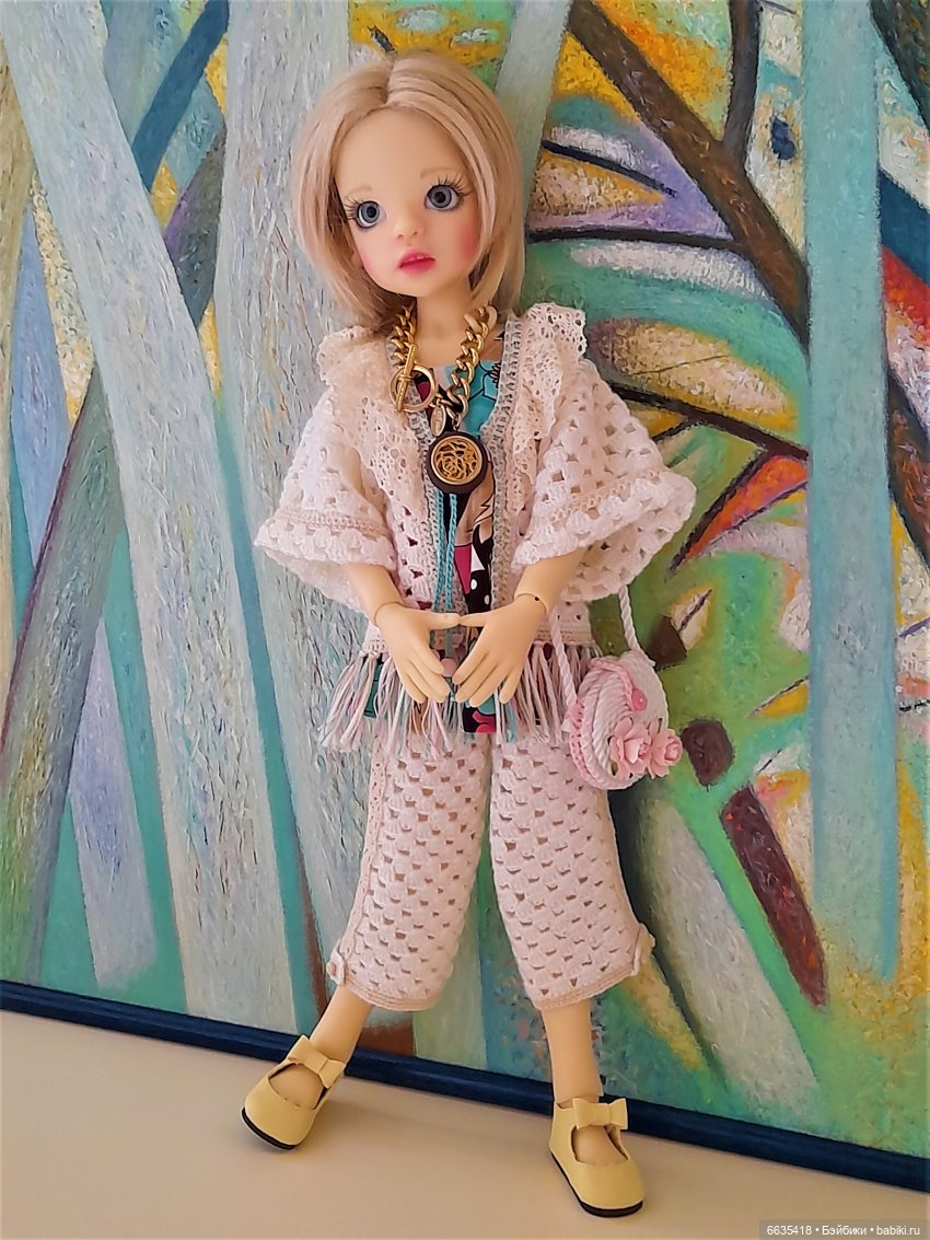 Кстати, эту девочку я дважды отправляла на конкурс в этом году (вязала тоже сама и сумочку сама).