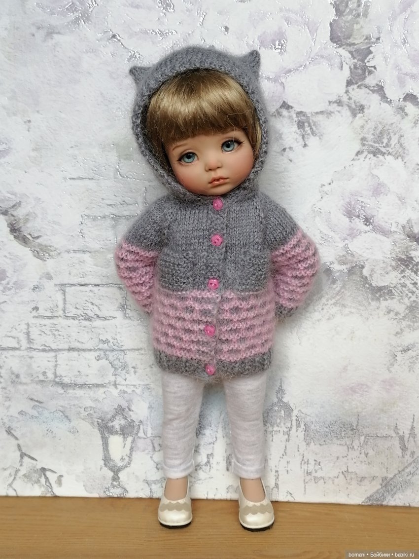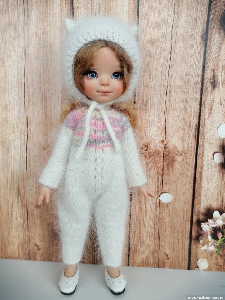 У Вас такая мягонькая и пушистенькая Лялечка! Как раз по сезону одета. А я тепленькое пока только Варежке связала, Лялечка в очереди