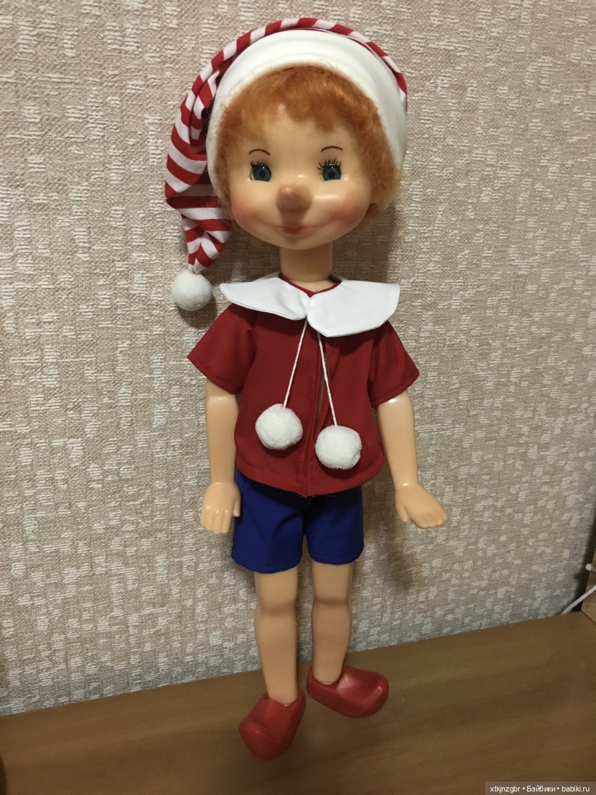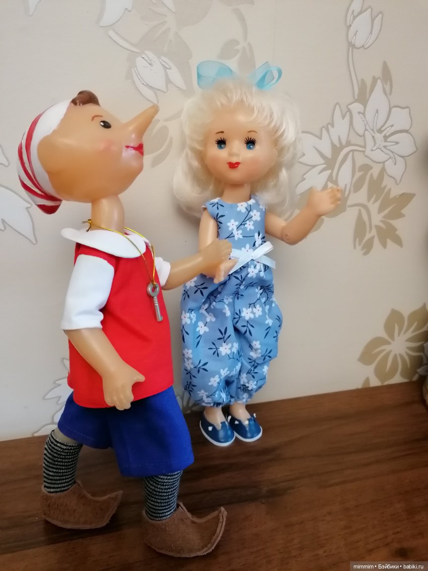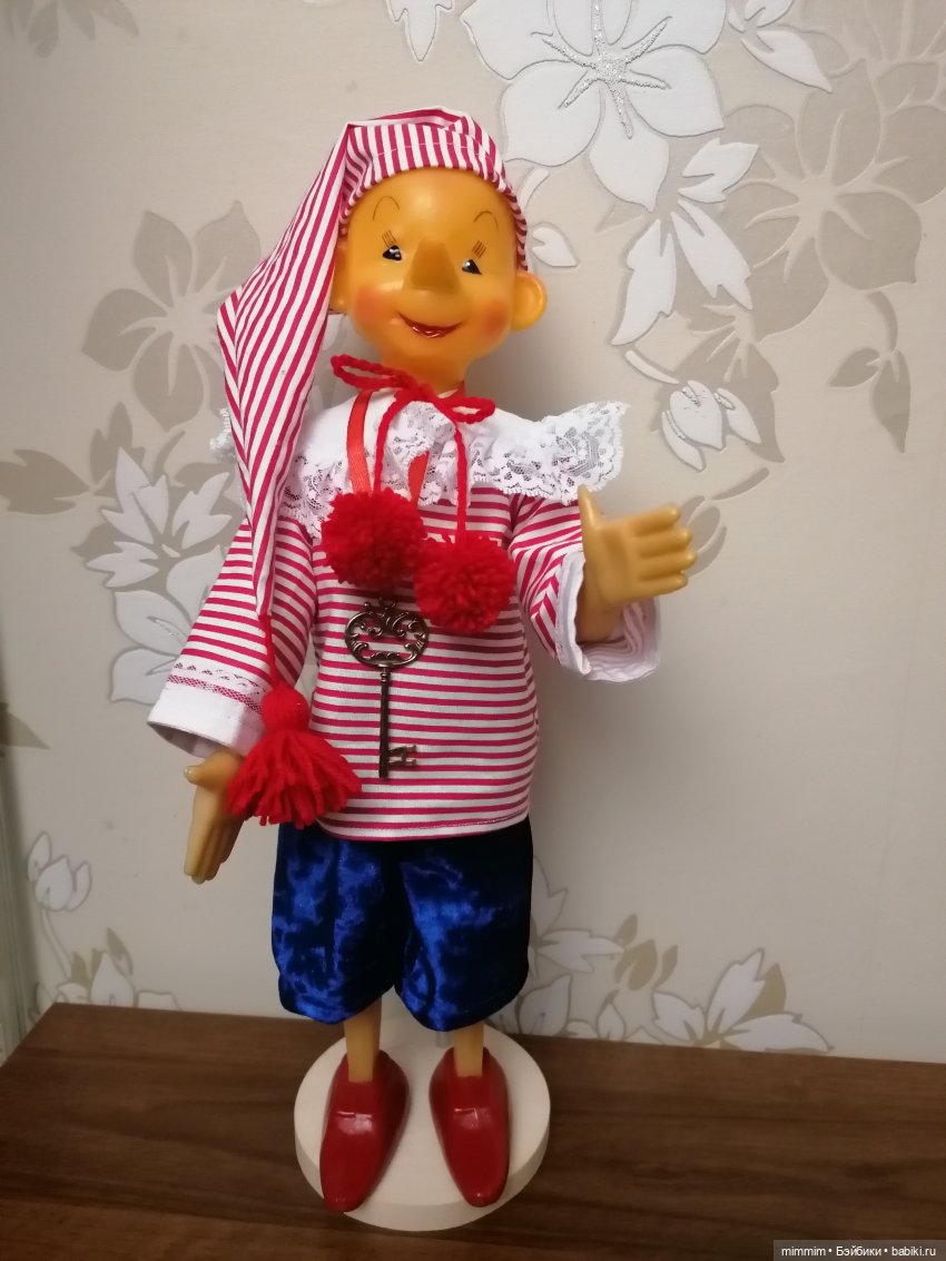 А я своего Буратинку одела как собрата из фильма «Приключения Буратино»))