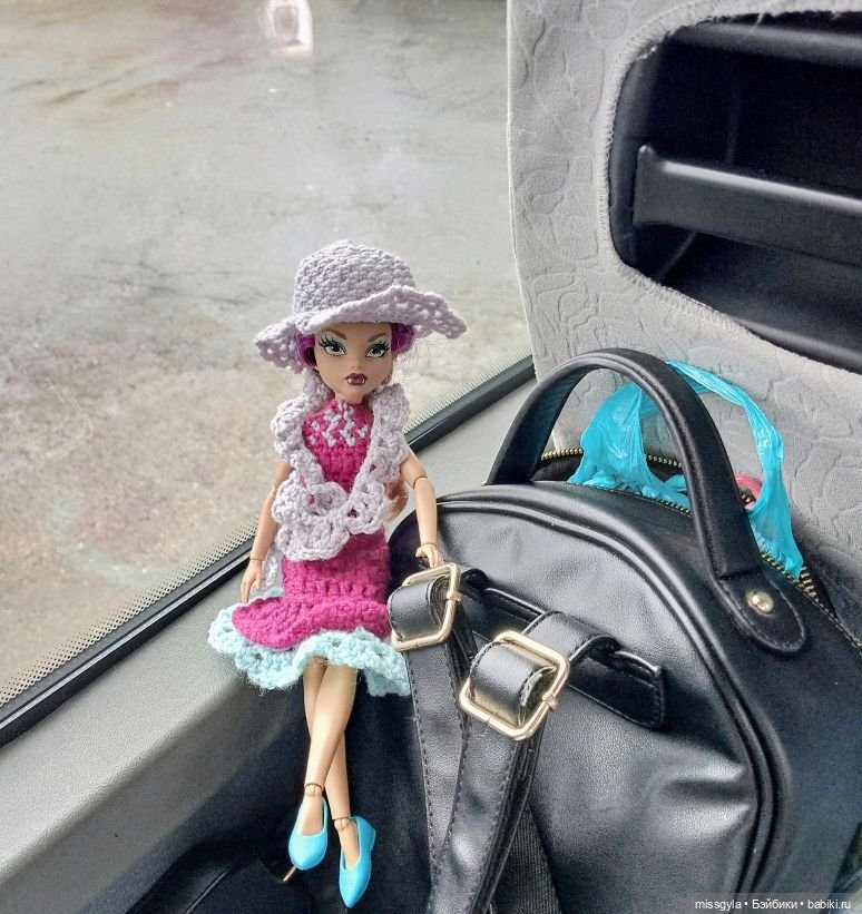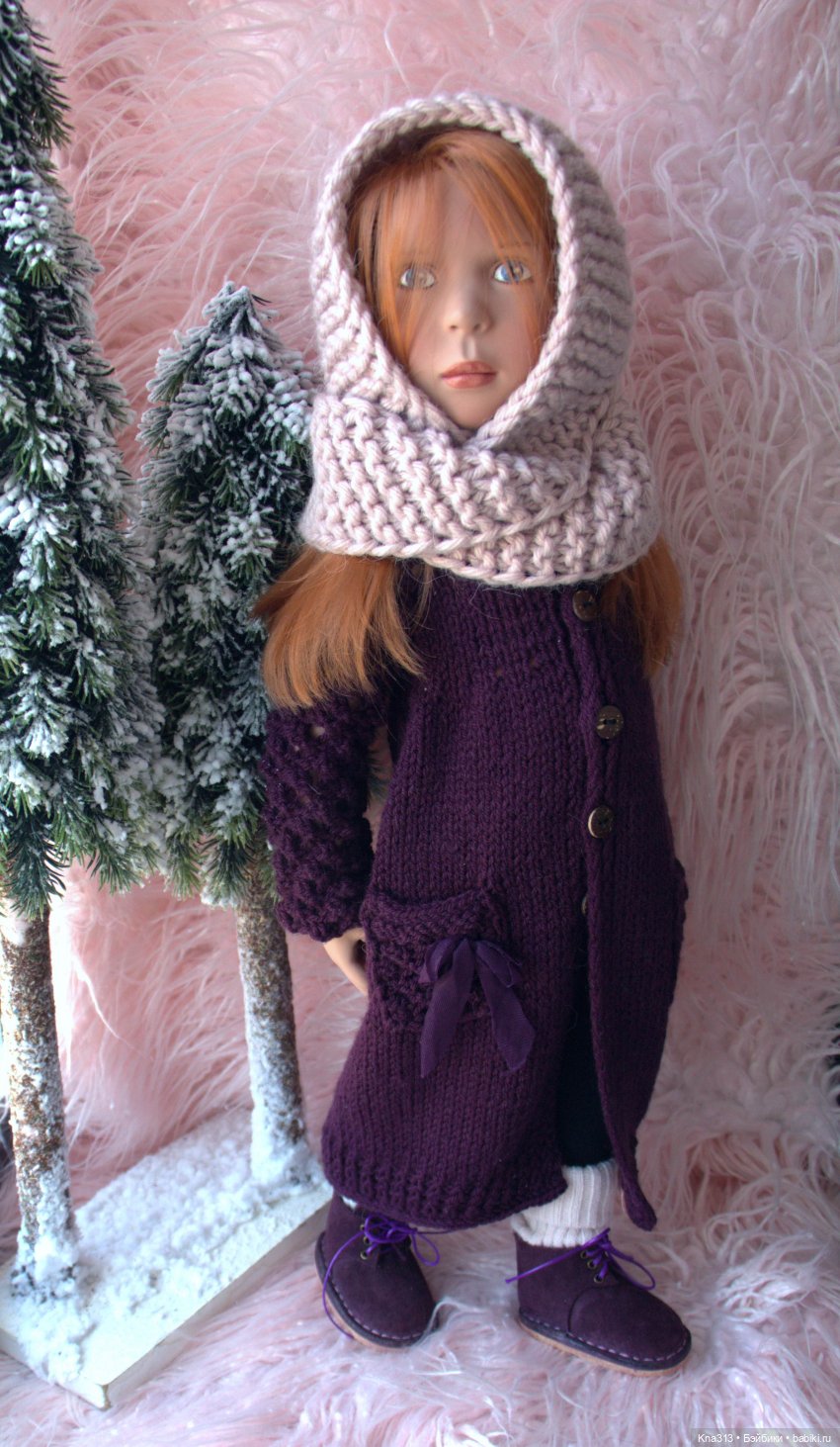 Тут мы еще Цвергуше связали платье/свитер и ей тоже примерили шарф фиолетовый.