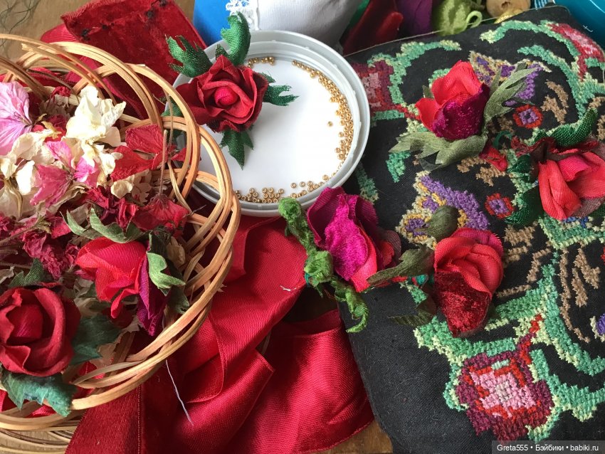 В работе у меня сейчас ещё бонет зелёного бархата, на более маленькую куклу… все интересующиеся моими работами — следите за шопиком, бонетик будет выставлен в ближайшие дни… розочки для него уже сделаны :