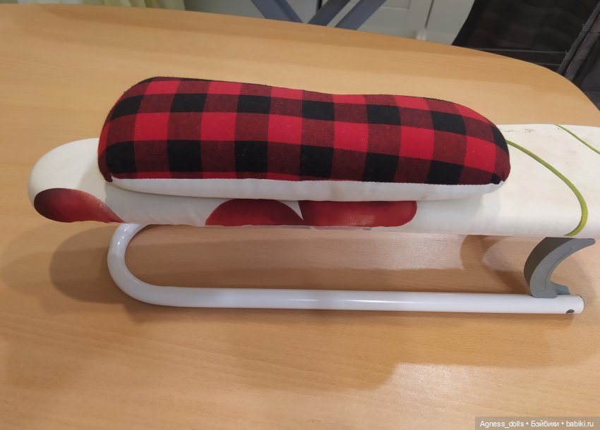 — Гладильный рукав (использую в качестве гладильной доски кукольного размера) и ткань-проутюжильник